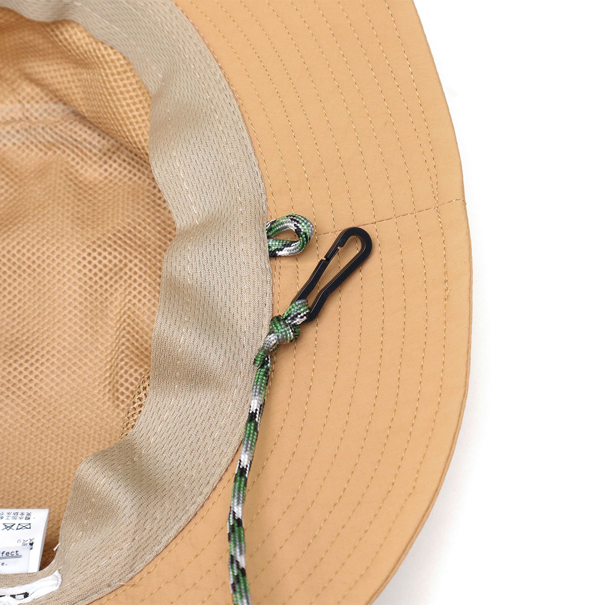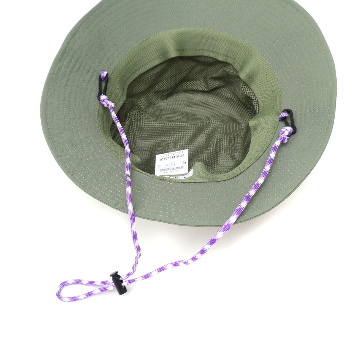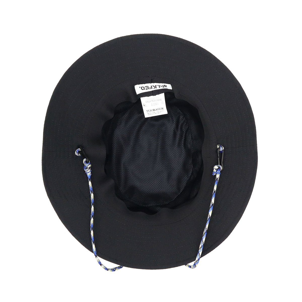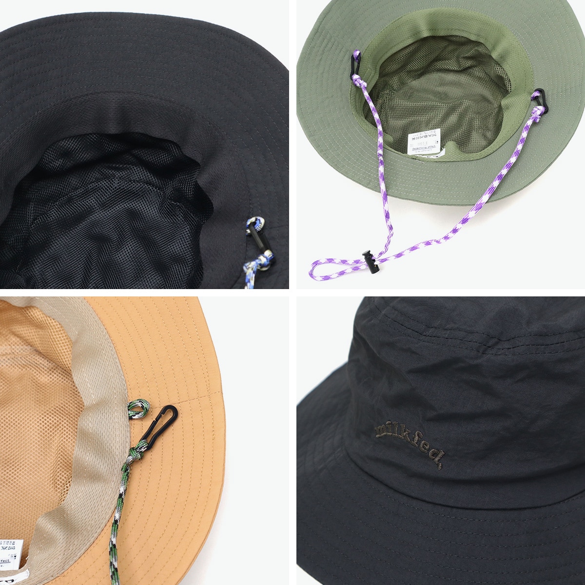 MILKFED.のロゴ刺繍入りバケットハットです。UVカット率99.9%・UPF55%で紫外線対策に最適。吸水速乾・撥水・消臭・抗菌機能など頼れる機能が満載です。取り外し可能なマルチカラーコード付きで、アウトドアや旅行にぴったりのアイテムです。