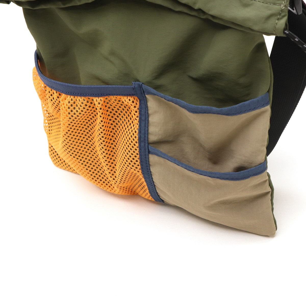 マルチカラーとメッシュポケットがポイントのショルダーバッグ。レトロなブランドロゴがポップな印象を演出し、スタイリングのアクセントになります。普段使いのメインバッグとしてはもちろん、サブバッグとしてもオススメのアイテムとなっています。