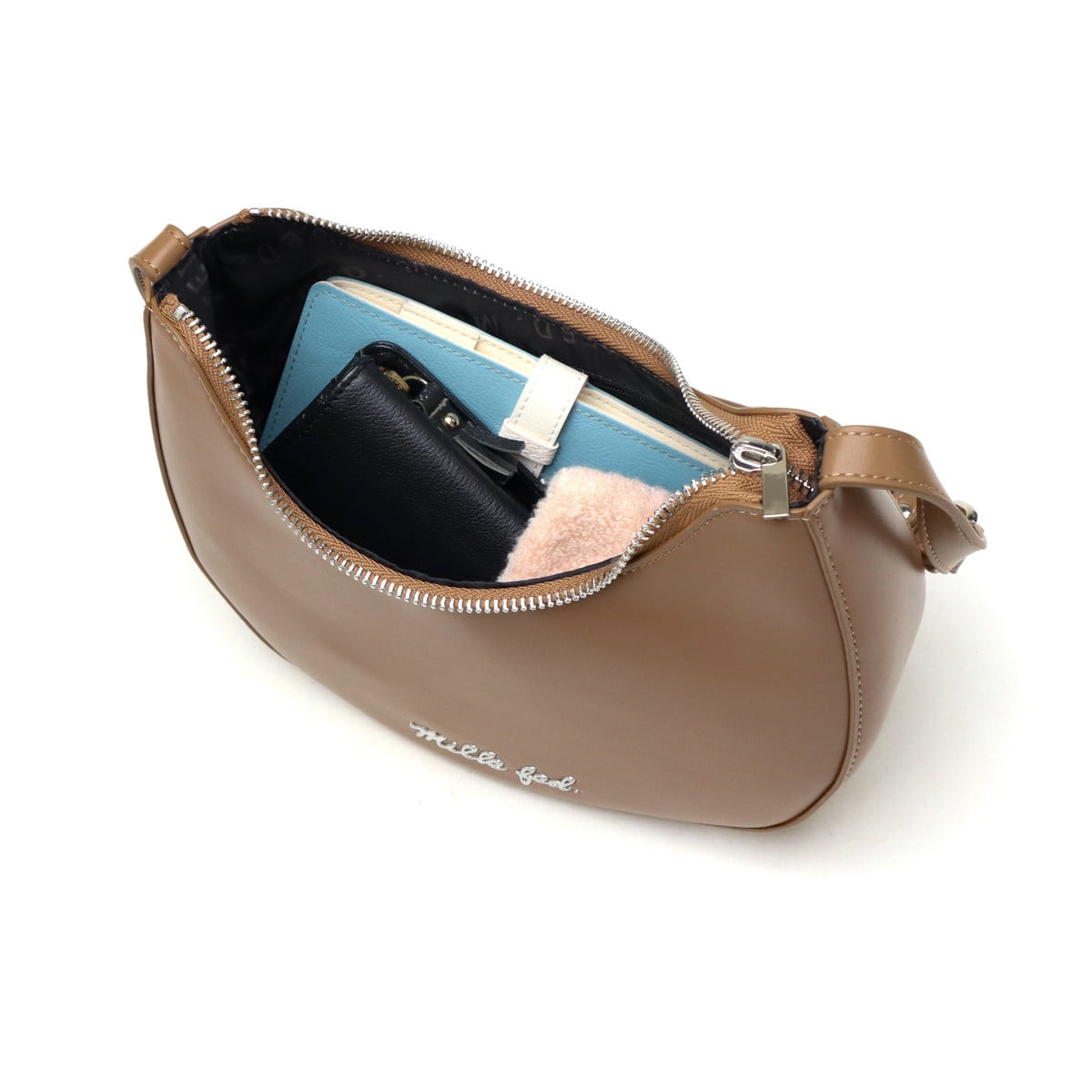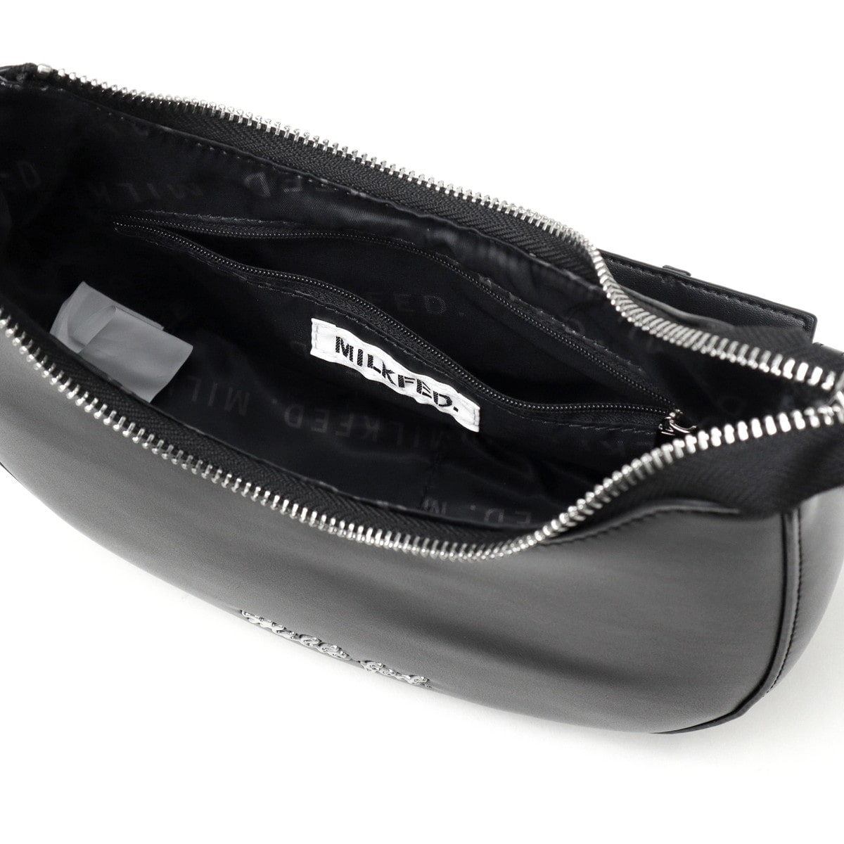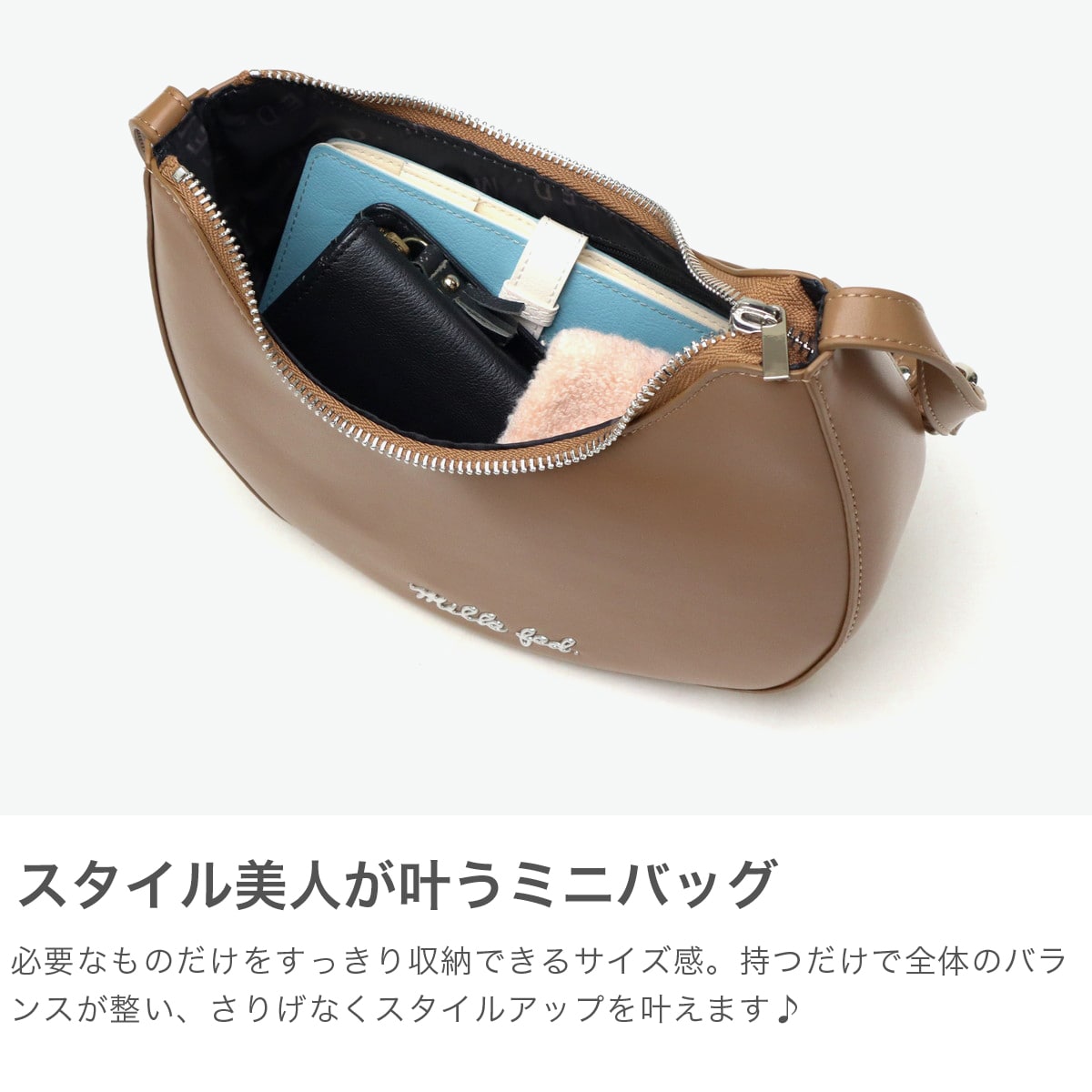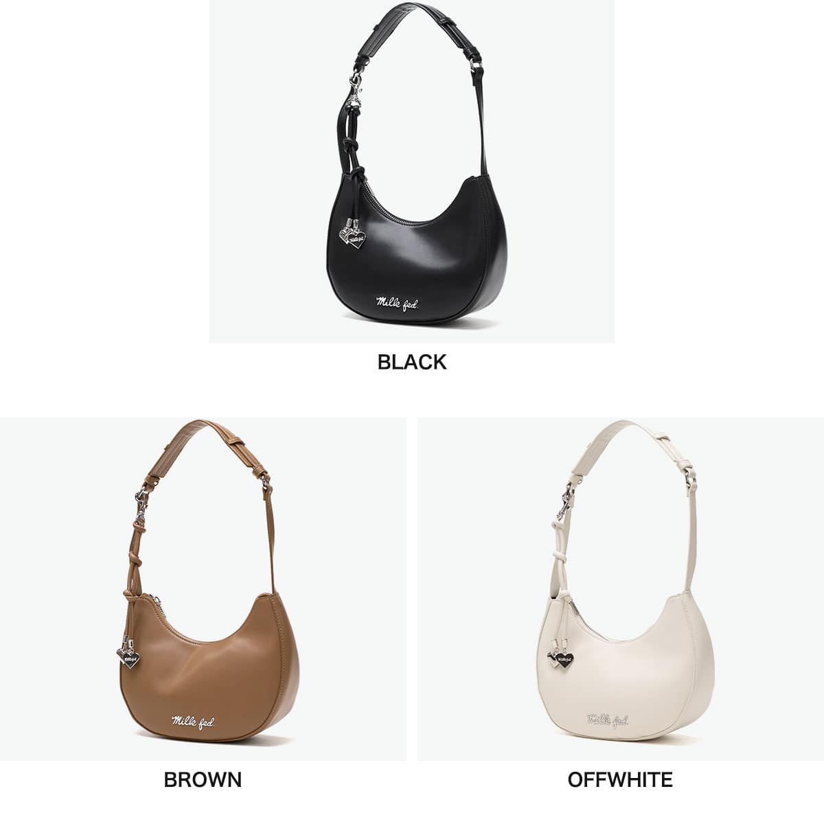 丸くコンパクトなフォルムで、コーデを華やかにしてくれるハンドバッグ。メタルロゴのモチーフと、揺れるハートのチャームがポイント。手持ちバッグとしてはもちろん、アウターの上からでも肩掛けできる持ち手の長さになっています。コンパクトながらしっかり収納できるサイズ感で、デイリーからちょっとしたお出かけまで幅広く活躍するアイテムです。