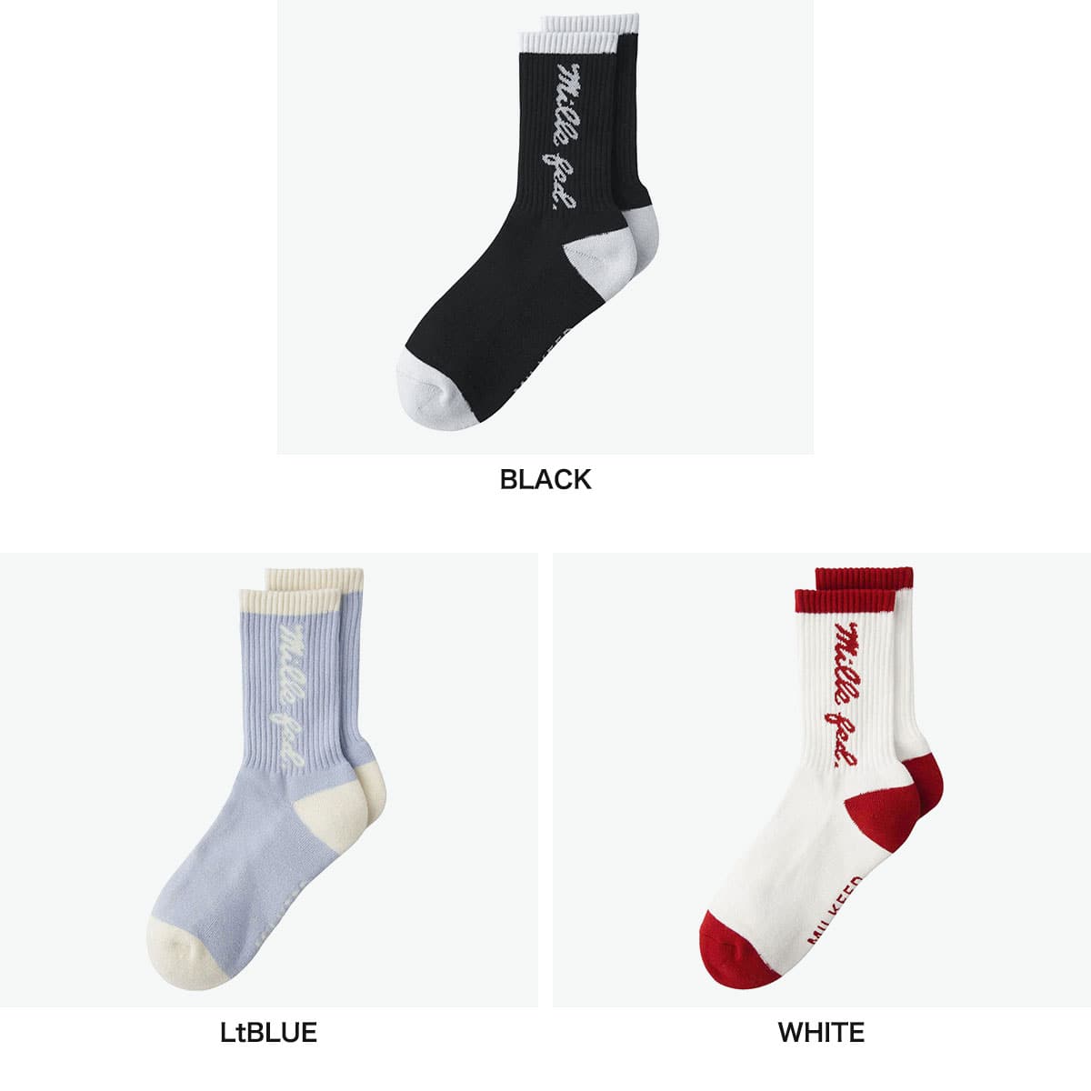 デイリーに取り入れたい、MILKFED.ロゴのジャガードソックス。定番のリブソックスは足裏パイルでしっかりとした作りになっており、履き心地も抜群◎。足裏にもロゴ入りで、見えないところもオシャレに抜かりなしです!