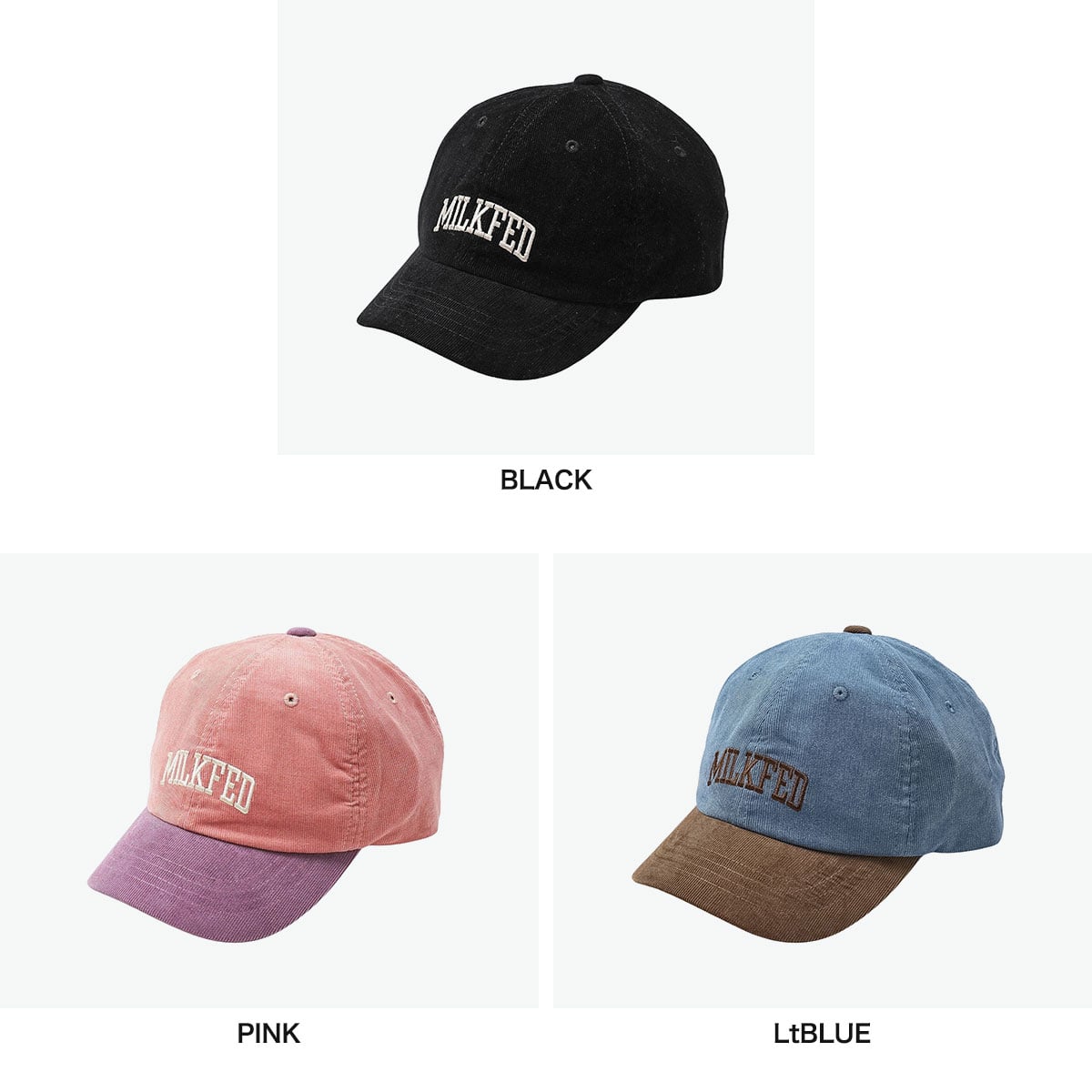 ミルクフェド キャップ レディース コーデュロイ MILKFED. 秋冬 帽子 ロゴ ブリムキャップ ショートブリム 秋 冬 かわいい おしゃれ ガーリー カジュアル ロゴキャップ シンプル バイカラー LOGO CORDUROY CAP 103253051005