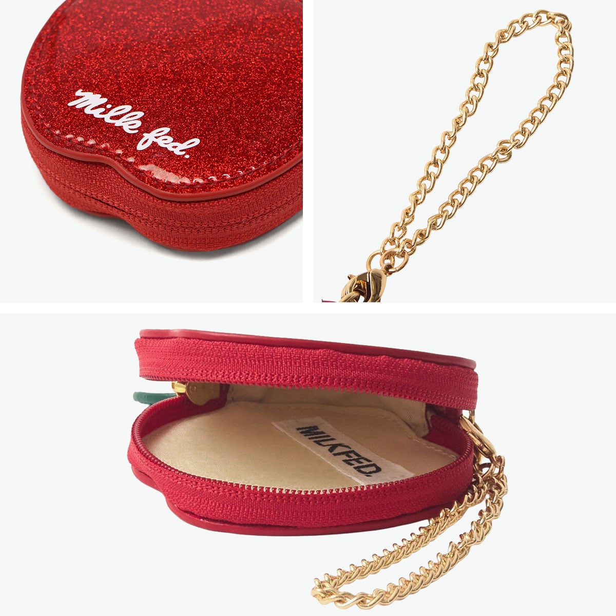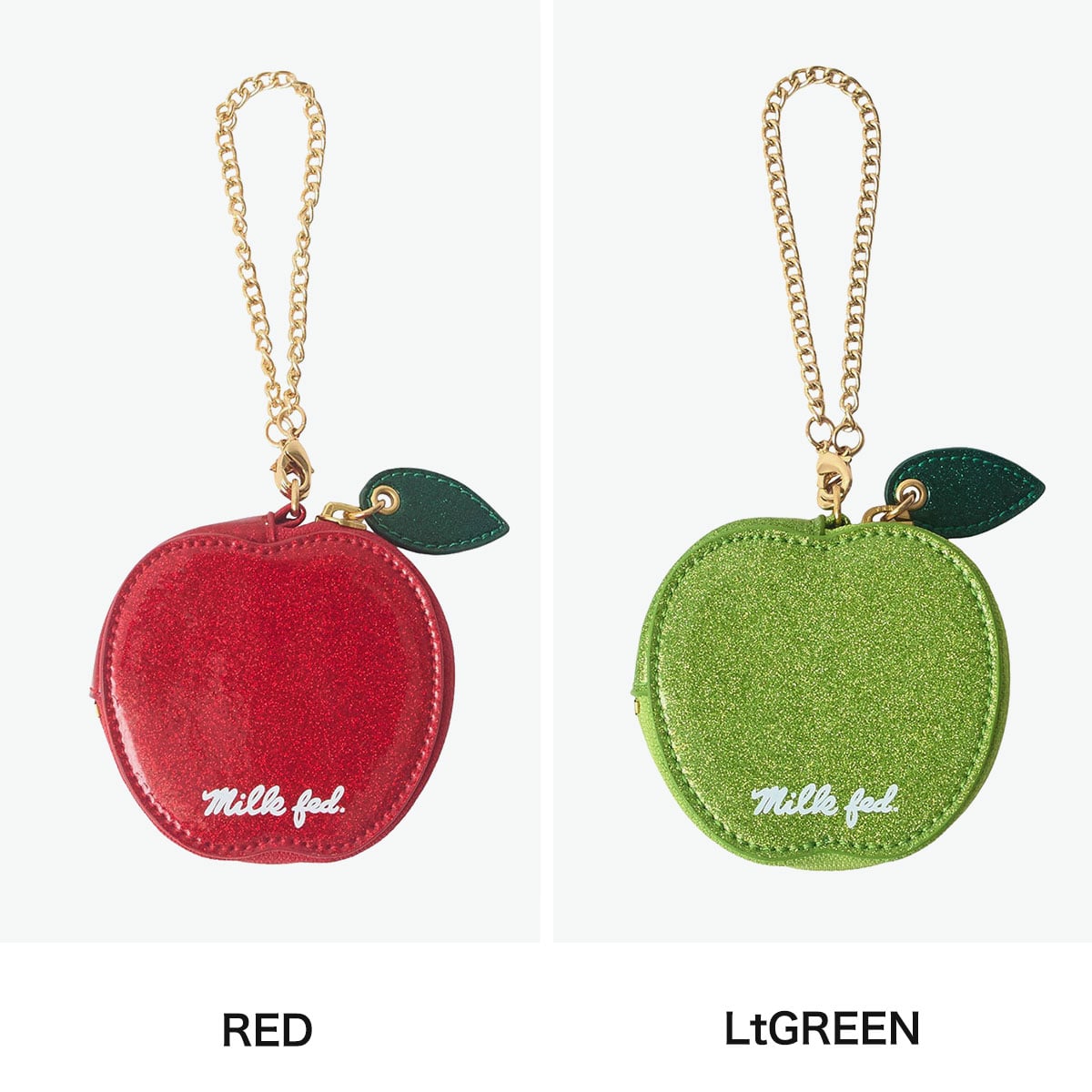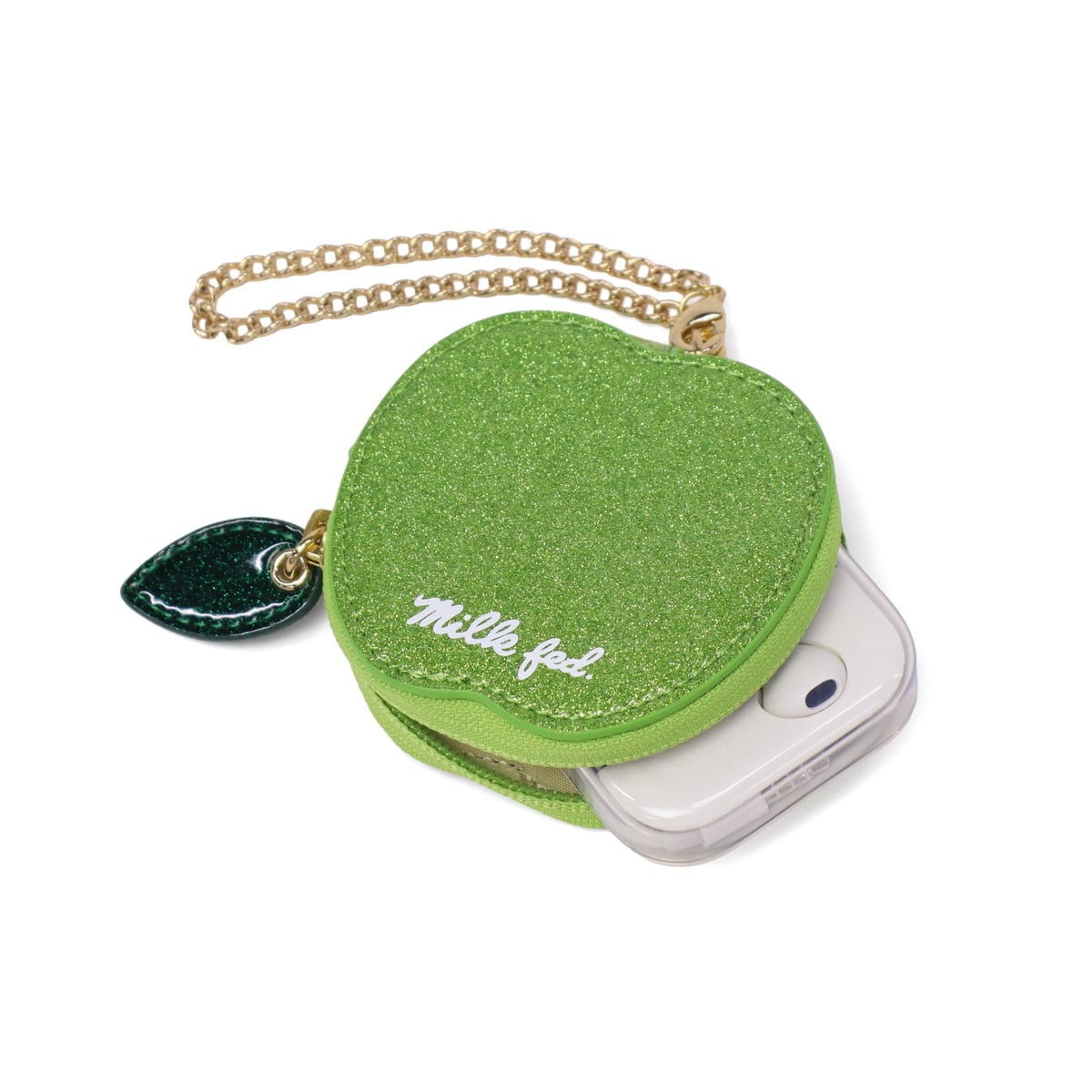 MILKFED. ミルクフェド ポーチ リンゴ キラキラ おしゃれ ラメ チェーン付き バッグチャーム APPLE POUCH 103254054008
