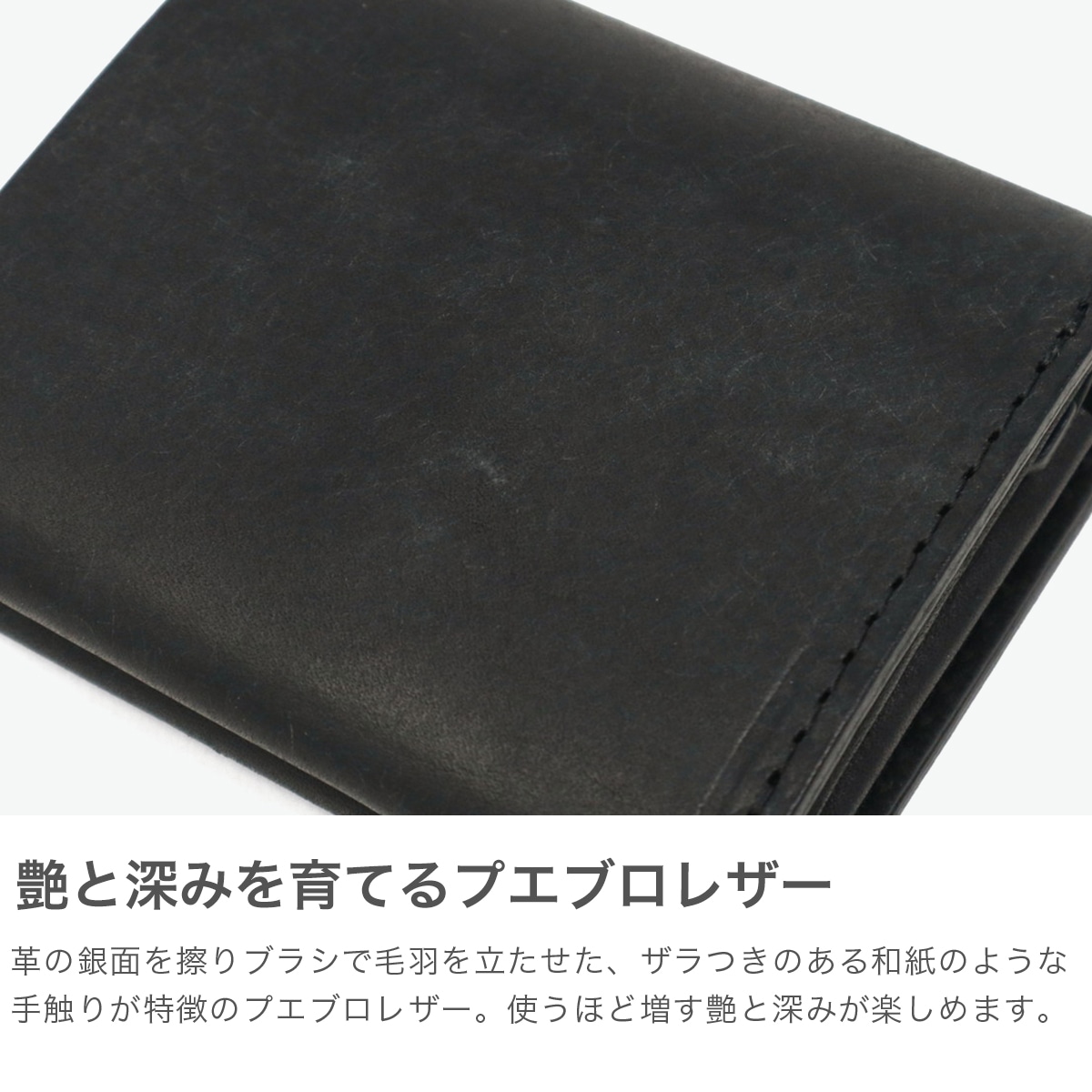 使いこむほどに、しっとりとした手触りと飴色に経年変化する雰囲気を楽しめる二つ折り財布。イタリアのフィレンツェで生まれたプエブロレザーを使用し、日々育てる楽しみを味わえるのもポイントです。無駄をそぎ落としたシンプルなデザインで、できるだけミニマムに使いたい方におすすめ。スマートながら、カード収納など必要十分な機能はしっかり装備しており、実用性も兼ね備えたアイテムとなっています。