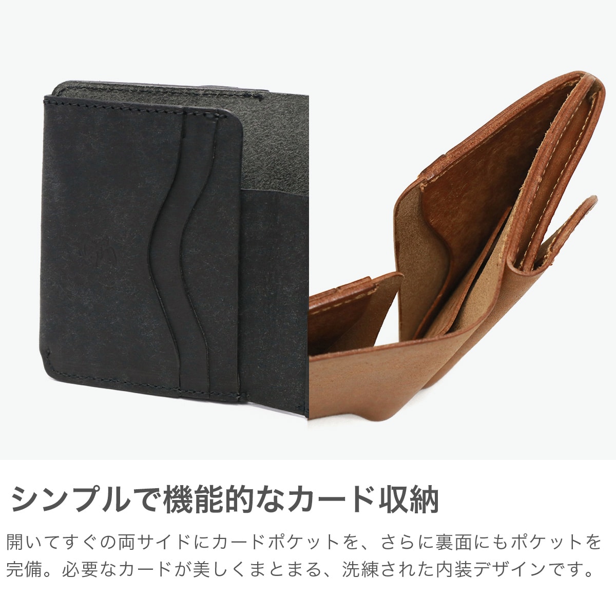 イタリア・フィレンツェ生まれのプエブロレザーを使用した二つ折りウォレット。プエブロレザーは、生後2年以上の雌牛をベジタブルタンニンで鞣した後、ニートフットオイルをじっくりと浸透させる“バケッタ製法”で作られた革。コンパクトながら優れた収納力を備えた、機能美あふれる一品です。