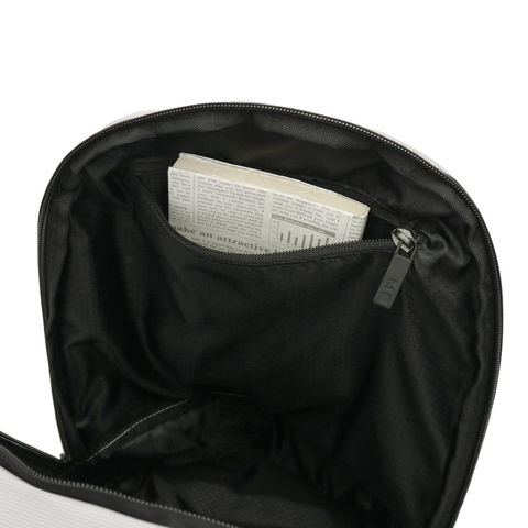 本体には独特のエンボス加工を施したハニカムライニングを採用。耐水性を備えた素材となっており、持ち物を水滴から守ってくれます。また、フロントにあるリフレクターのディテールは夜間の視認性に優れ、デザインのアクセントにもなります。