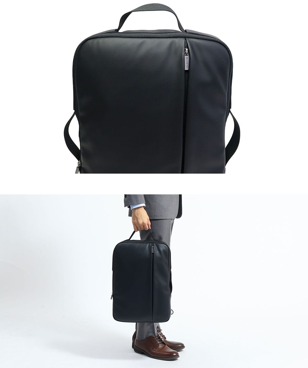 本体はバッグのふちに長いハンドルを配しています。スライド式となっていますので、使いたい方面にハンドルを引っ張ることでブリーフケースとしてもお使いいただけます。ハンドルが引けるのは3箇所とユニークな構造で、どちらからでも素早くピックアップできるのがポイントとなっています。