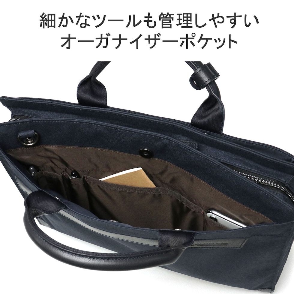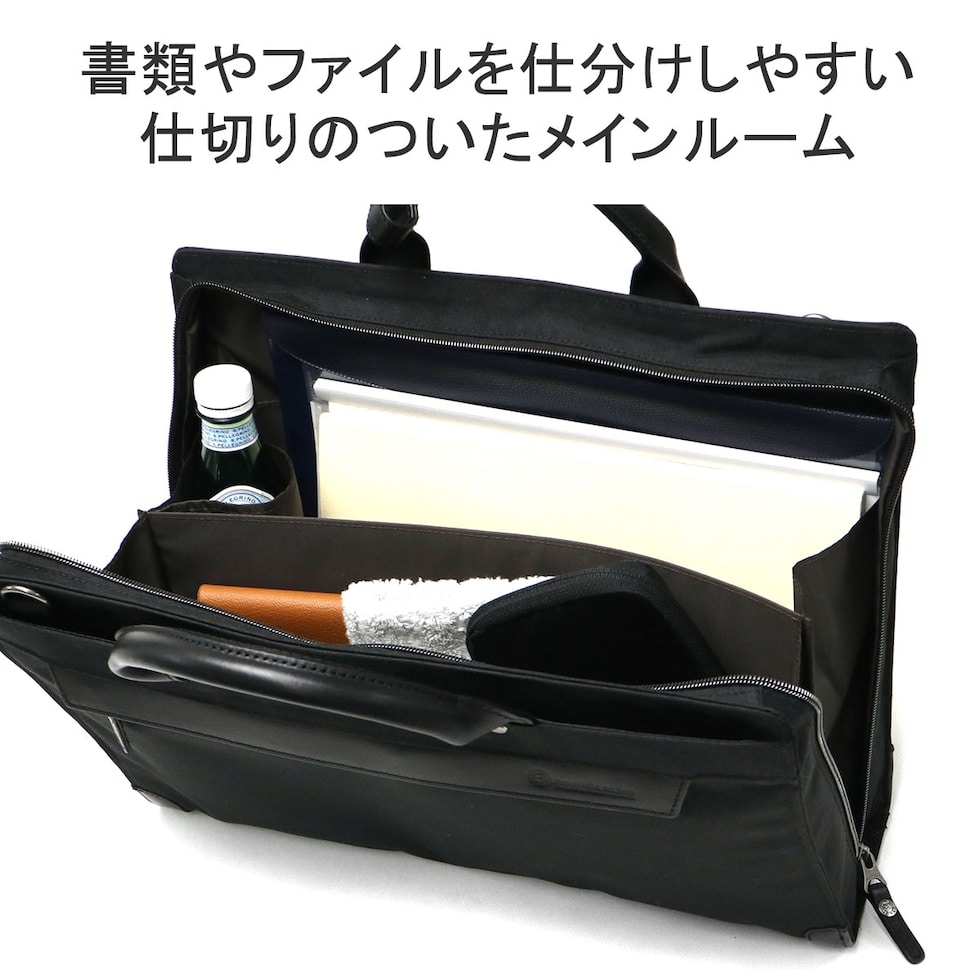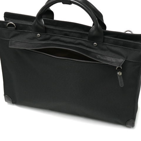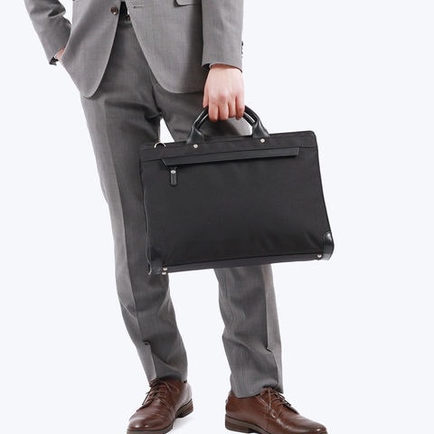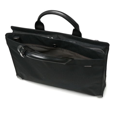 デザイン、コストパフォーマンスに優れたモノづくりに加え、多様なビジネスシーンでのニーズに応える多彩なラインナップを用意した『moustache on time』。こちらはシンプルな2WAYビジネスバッグです。本体は、底まで大きく開く収納部のほか、小物管理に便利なポケットを豊富に備えた造りに。ハンドルやファスナーの引手などの負荷がかかる部分には牛革を使用し、毎日のハードワークを支えます。