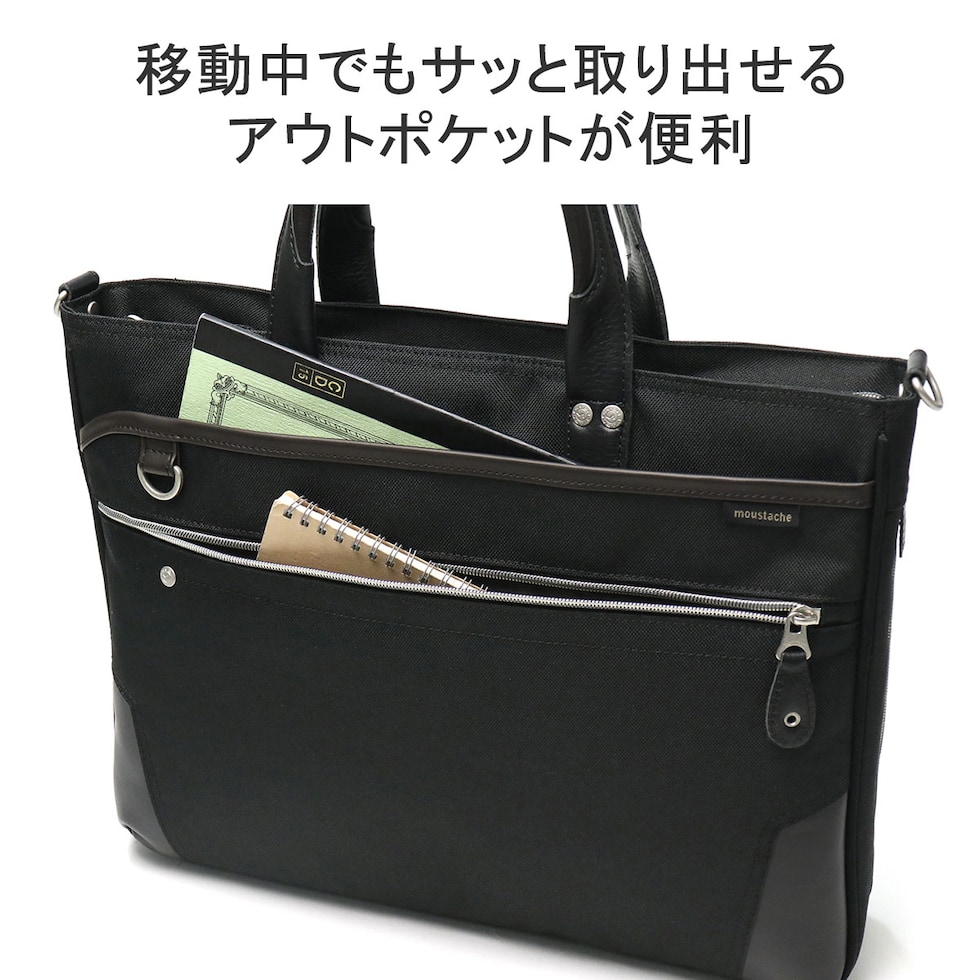 デザイン、コストパフォーマンスに優れたモノづくりに加え、多様なビジネスシーンでのニーズに応える多彩なラインナップを用意した『moustache on time』。B4対応のスリムな収納部には、効率的な小物用ポケットを豊富に装備。マチの拡張時にも対応する底芯など、機能的な設計でビジネスライフをサポートします。