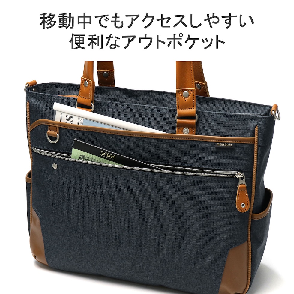 デザイン、コストパフォーマンスに優れたモノづくりに加え、多様なビジネスシーンでのニーズに応える多彩なラインナップを用意した『moustache on time』。本体はB4サイズがゆったり収まる大きめサイズで、機能的なポケットも充実。ビジネスライフに寄り添い頼れるアイテムです。