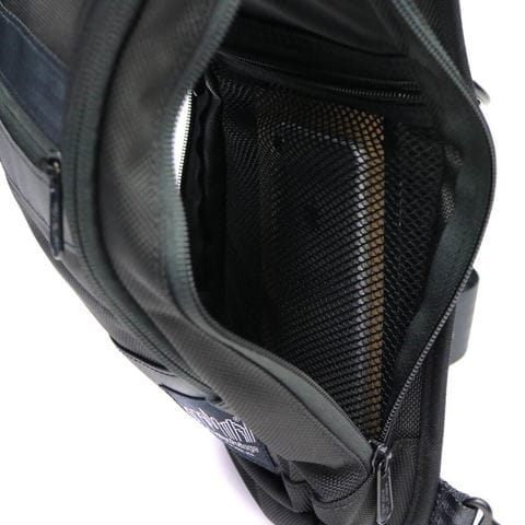 A5サイズがぴったり収まる収納部は、左右両方のサイドに開口部が設けられておりどちらからもアクセスが可能。内部にはメッシュ素材で視認性に優れたジップポケットを装備しています。