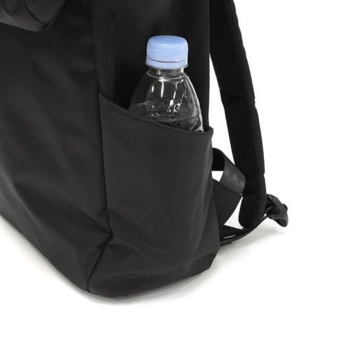本体サイドには、メインルーム直通のファスナーが設けられ、トップのフラップを開くことなく荷物を取り出せるようになっています。移動中など、バッグを抱えたまま物を取り出したいときなどに便利です。