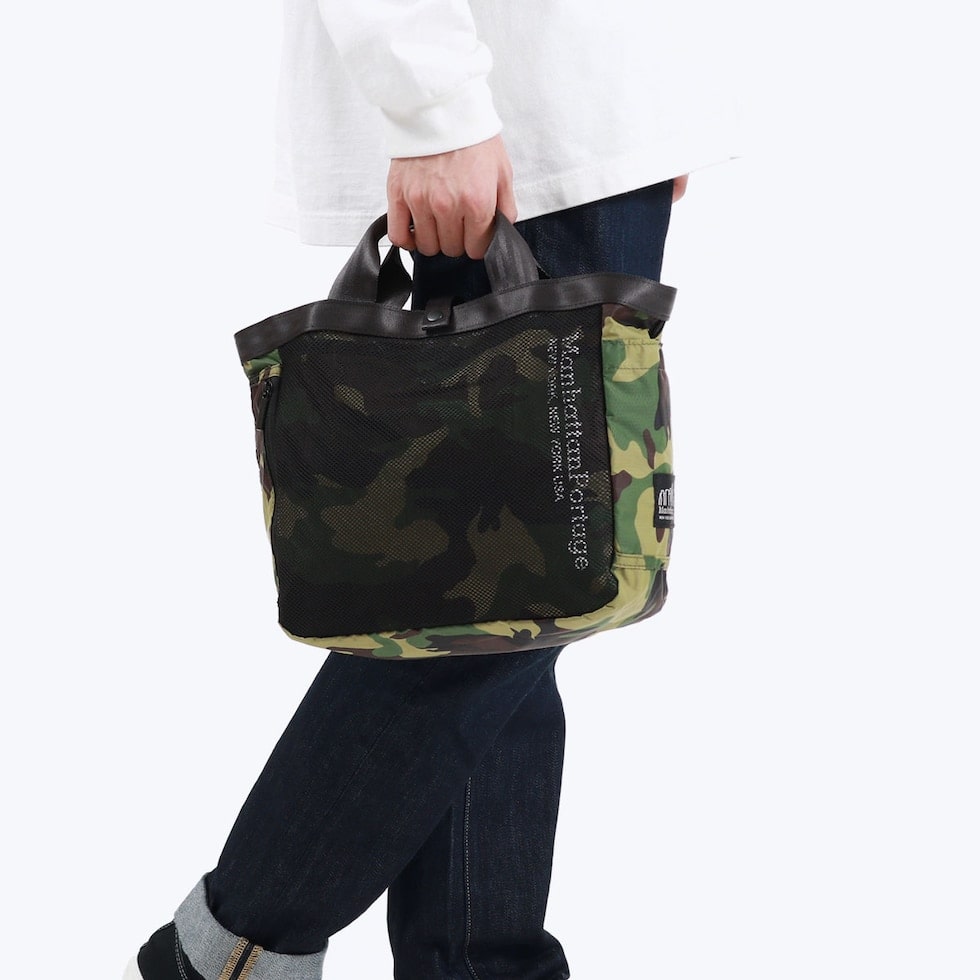 機能的なワンマイルトートに、よりアクティブなルックスをもったカモ柄デザインが登場。素材には、薄く軽量な仕上がりながらも、撥水性や耐久性に優れた「リップストップナイロン」を採用。キャンプやフェスなどのアウトドアシーンや、ジムやゴルフなどのスポーツシーンでも注目を集めるアイテムとなっています。
