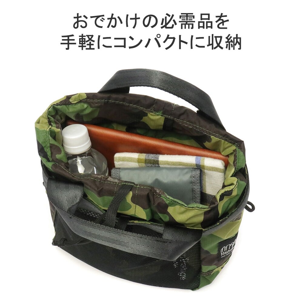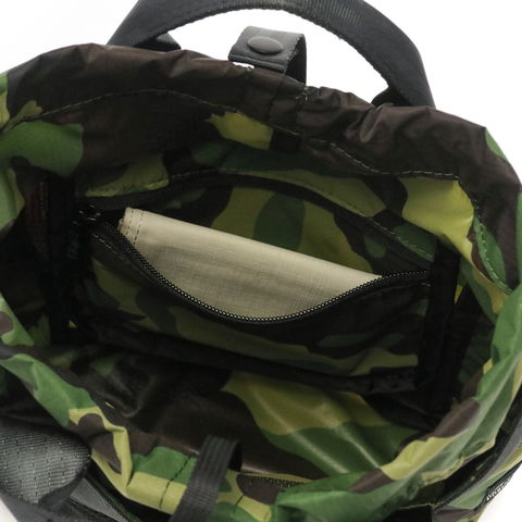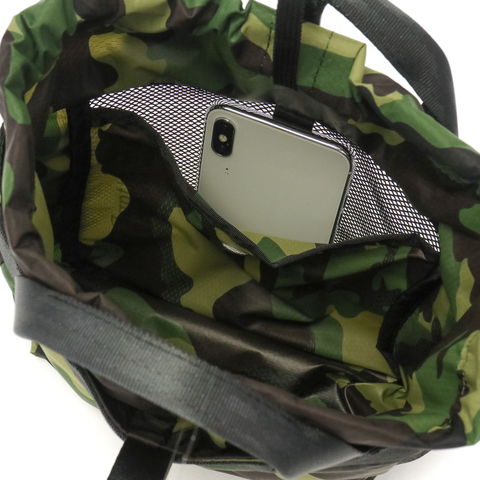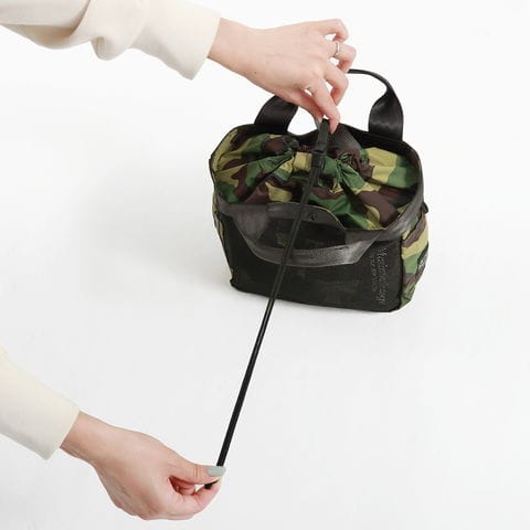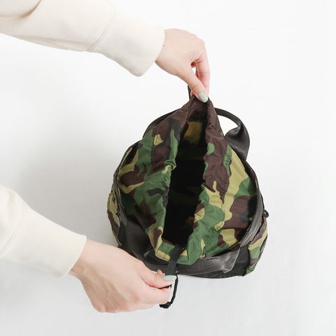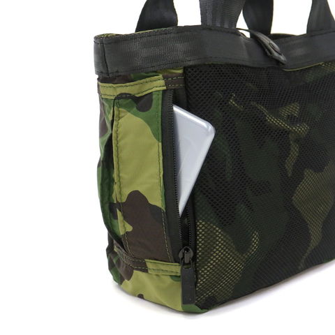 機能的なワンマイルトートに、よりアクティブなルックスをもったカモ柄デザインが登場。素材には、薄く軽量な仕上がりながらも、撥水性や耐久性に優れた「リップストップナイロン」を採用。キャンプやフェスなどのアウトドアシーンや、ジムやゴルフなどのスポーツシーンでも注目を集めるアイテムとなっています。