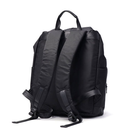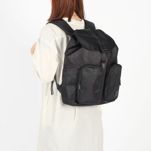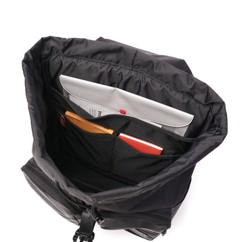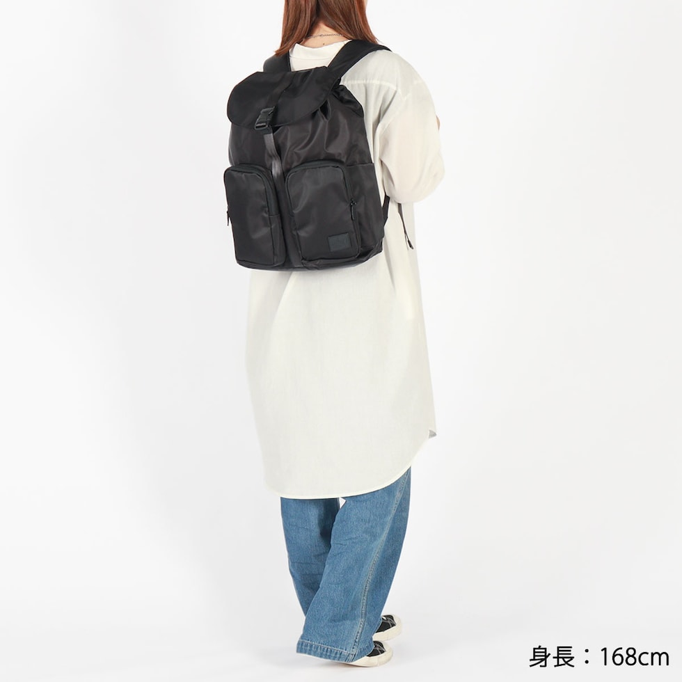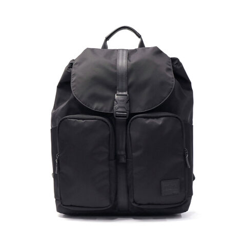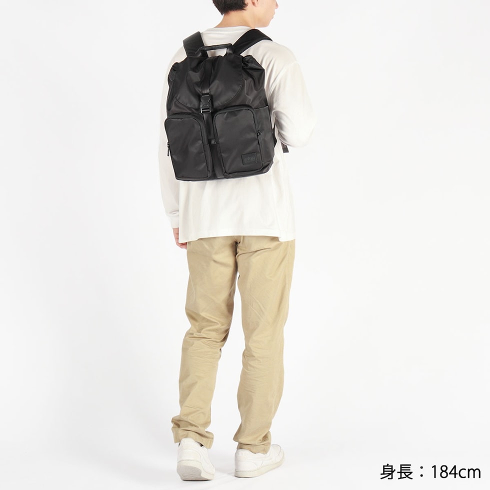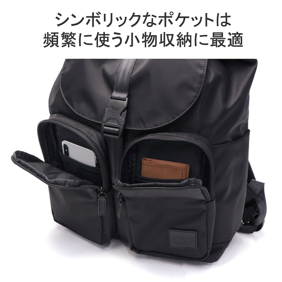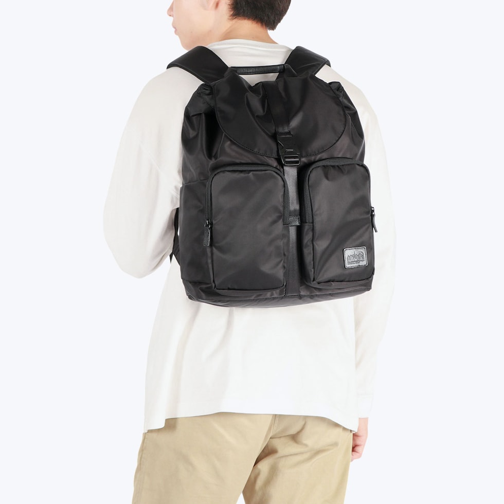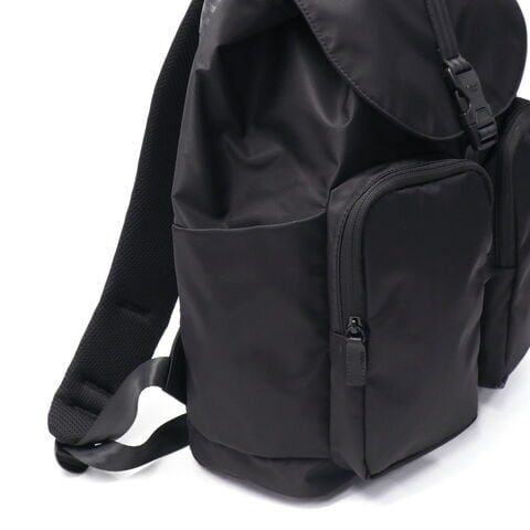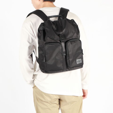 非常に軽くソフトな風合いながら、傷がつきにくい丈夫さを持ち、撥水・防泥効果も備えた生地「CORDURA TWILL NYLON」。この特徴を最大限に活かして誕生したのがこちらのバックパックです。一見シンプルですが、フロントに縦型ポケットを2つ配置した遊び心あるデザインに。日頃持ち歩くデバイス類やペットボトルなども、スタイリッシュに持ち運ぶことができます。