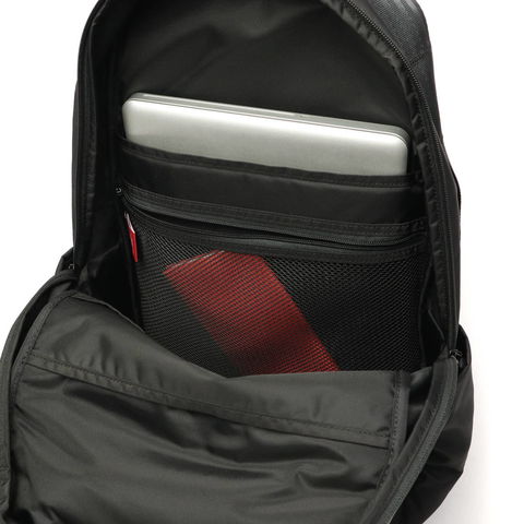 アーバンな雰囲気漂うオールブラックのデザインで、カジュアルスタイルにもスーツスタイルにも合わせやすいバックパック。素材には強度と軽さを両立し、上品な光沢のあるCORDURA TWILL NYLONを採用。普段使いから通勤・通学とタフに活躍してくれます。
