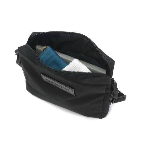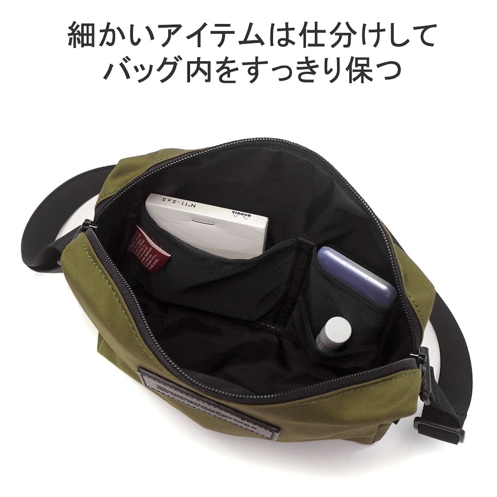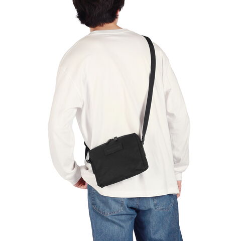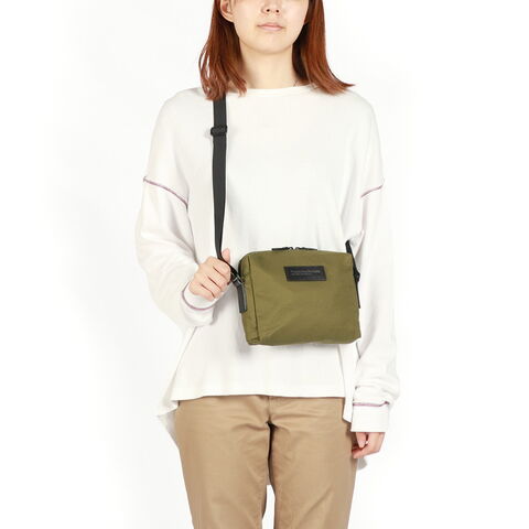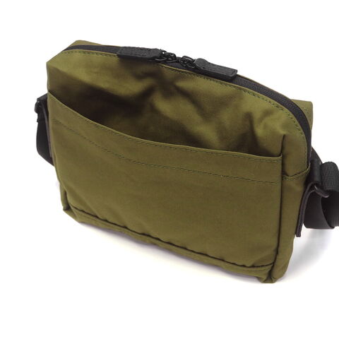 耐水・撥水性と浸透・通気性を両立した高密度織物ベンタイルを採用し、機能性とスタイルを兼ね備えたショルダーバッグです。コンパクトなサイズながら、スマートフォンや長財布がすっきり収まるちょうど良い収納力を備えています。シンプルなルックスにブランドロゴの刻印が入ったレザーパッチがアクセントとなり、大人の洗練されたスタイルを演出します。