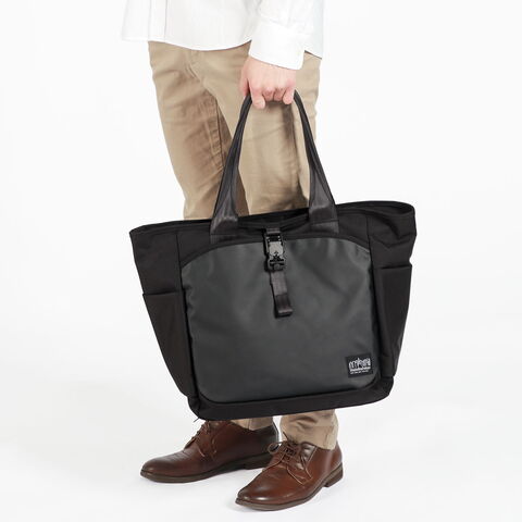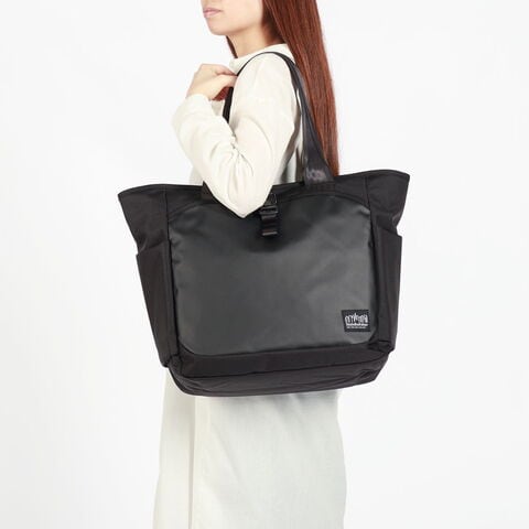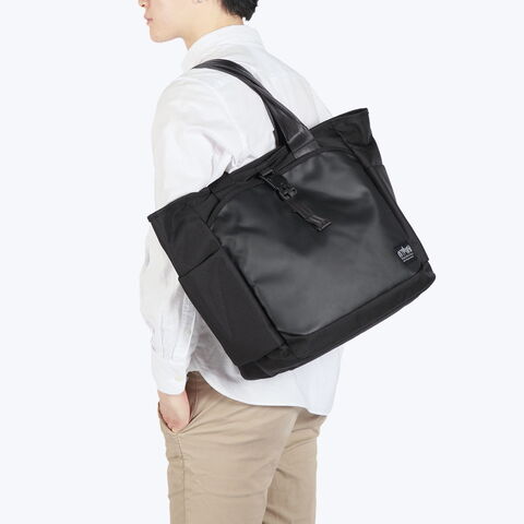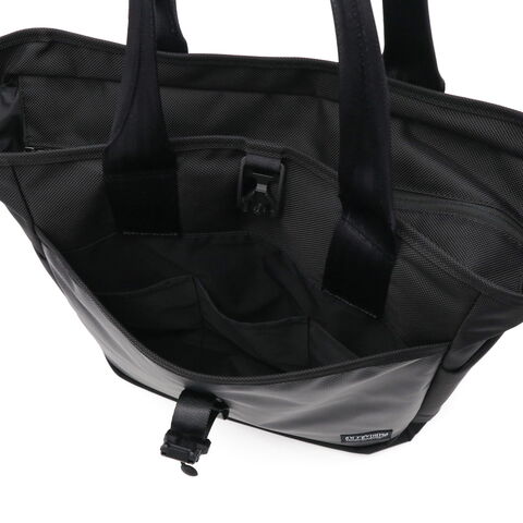 ブランド定番生地とPVC素材のコンビネーションモデルのトートバッグ。コーデュラバリスティックナイロンとターポリンビニール素材の組み合わせで防水性・耐久性に優れ、ON/OFF問わずタフにご使用いただけます。また、メインルームにはプライバシーを保護する天マチファスナーを配するなど、細部にまでこだわったアイテムとなっています。