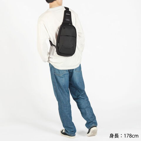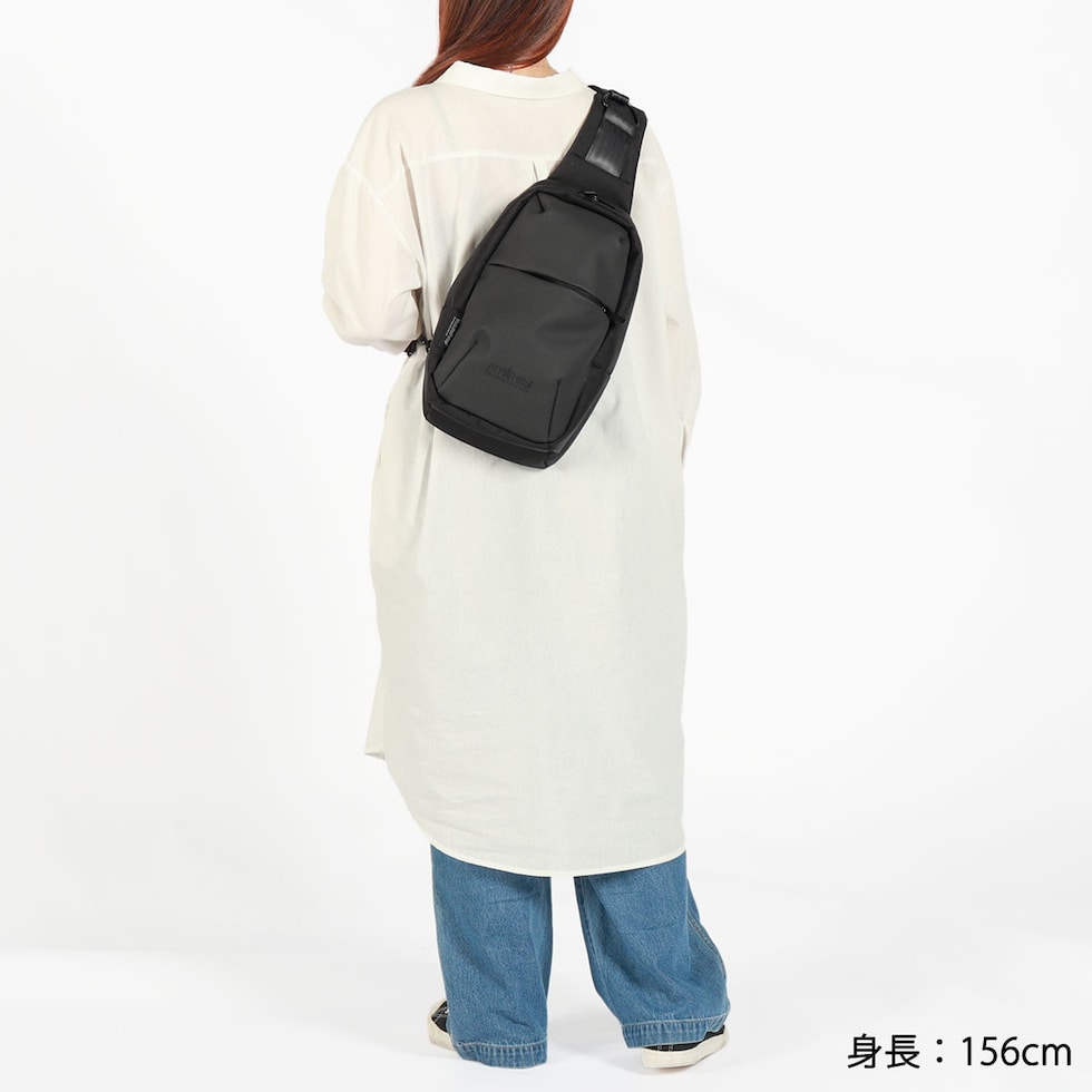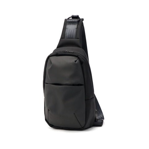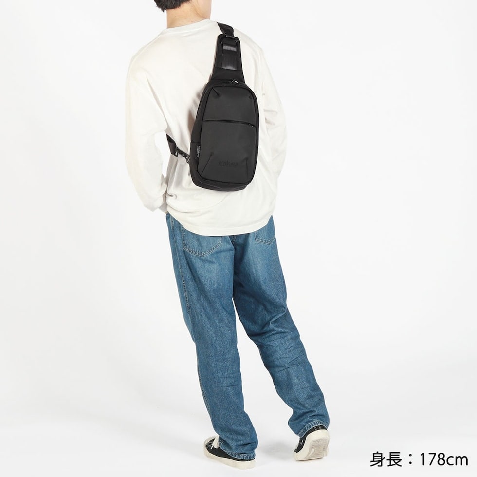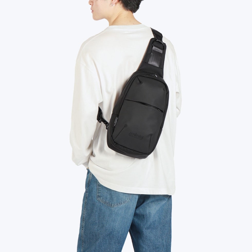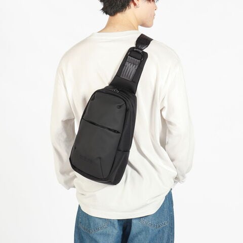 「VEGGIE LEATHER(ベジー・レザー)」を使用した、シンプルでスタイリッシュなワンショルダーバッグです。軽量で撥水性を備えたマットな素材は、独特のハリ感が魅力。500mlのペットボトルが余裕で収納できる、見た目以上の収納力を誇り、左右どちらでも使えるOカン付きで使い勝手は抜群です。“BLACK LABEL”のロゴはマットなプリントで表現され、オールブラックで統一感のある洗練された仕上がりとなっています。