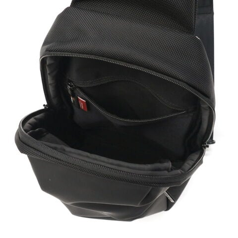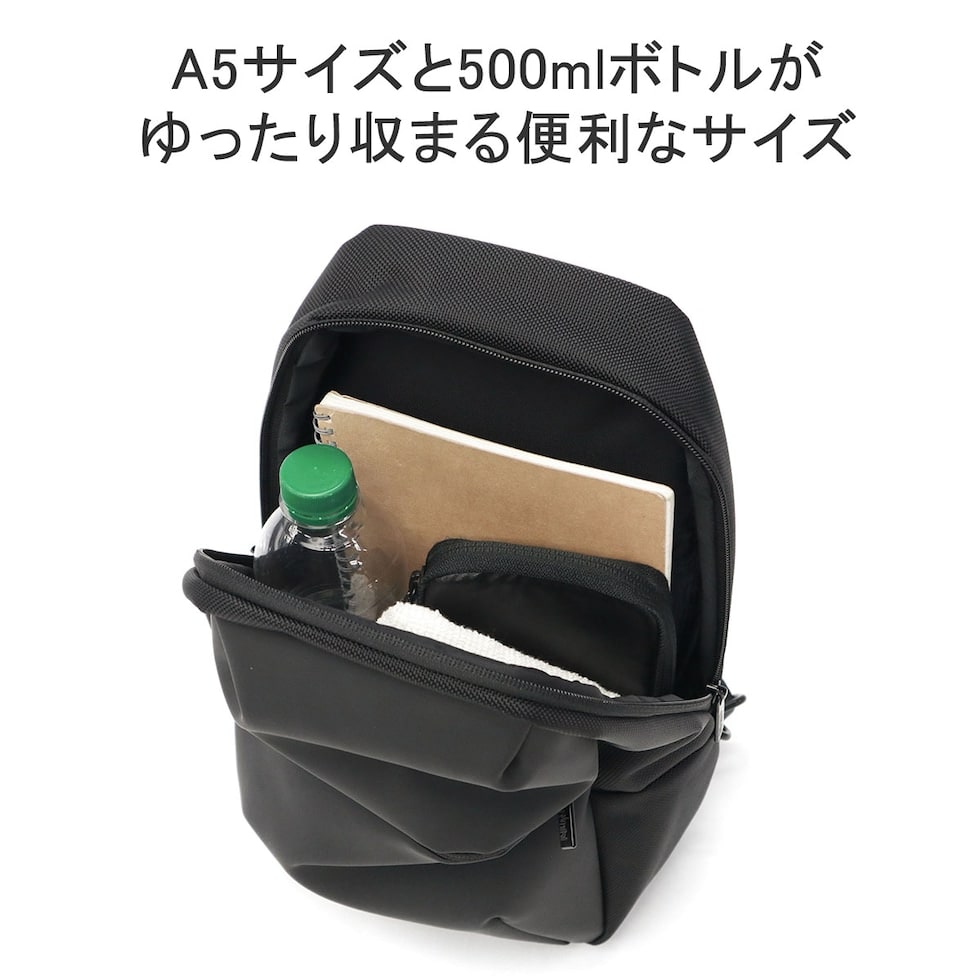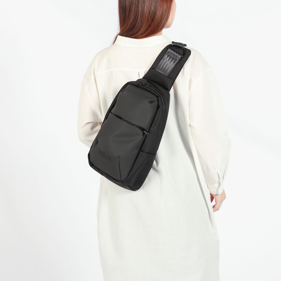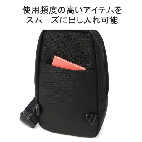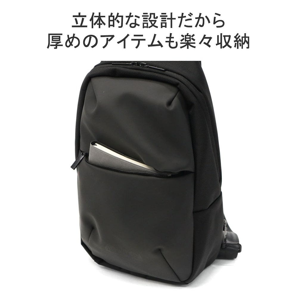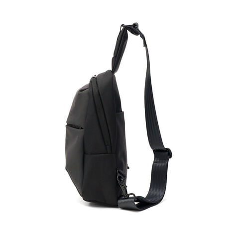 「VEGGIE LEATHER(ベジー・レザー)」を使用した、シンプルでスタイリッシュなワンショルダーバッグです。軽量で撥水性を備えたマットな素材は、独特のハリ感が魅力。500mlのペットボトルが余裕で収納できる、見た目以上の収納力を誇り、左右どちらでも使えるOカン付きで使い勝手は抜群です。“BLACK LABEL”のロゴはマットなプリントで表現され、オールブラックで統一感のある洗練された仕上がりとなっています。