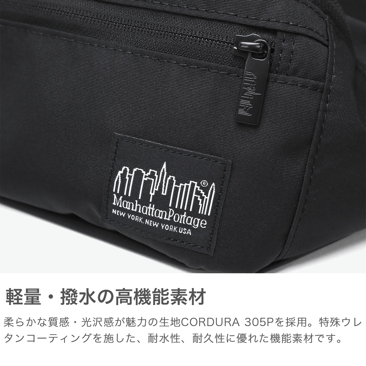細部のパーツまで「BLACK」カラーで統一することで、落ち着いた都会的なイメージを演出するシリーズ。生地の特性から、非常に軽量かつソフトな着用感が魅力的で、アクティブなシーンのみならず都会の移動シーンにもマッチする大人顔のアイテムです。コンパクトながら、ペットボトルや折りたたみ傘の収納も可能なサイズ感で、使い勝手の良さも高ポイント。