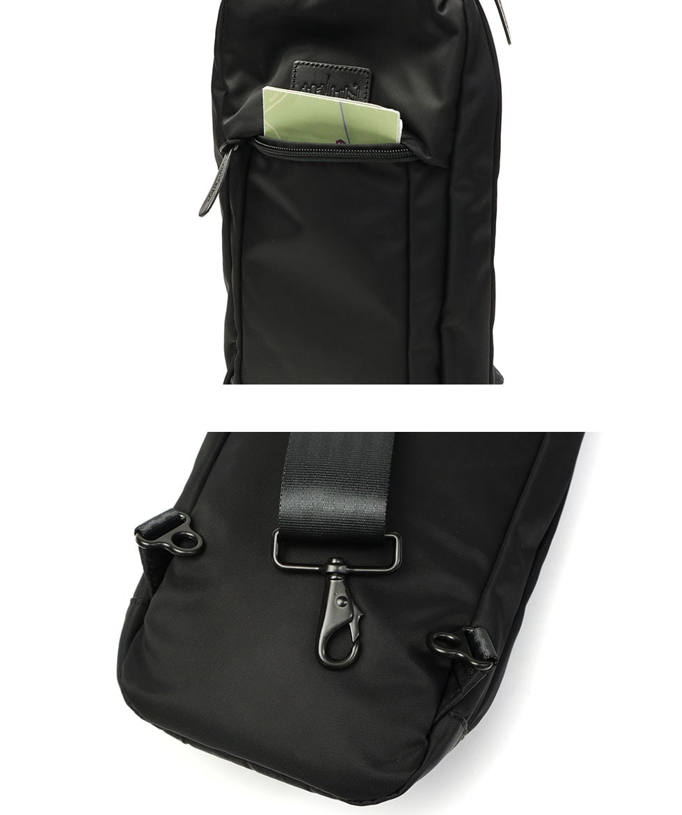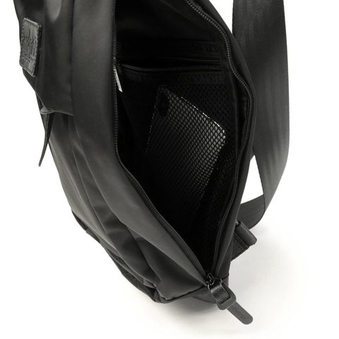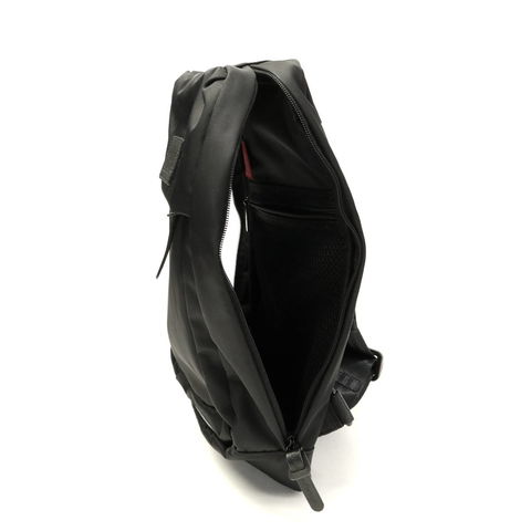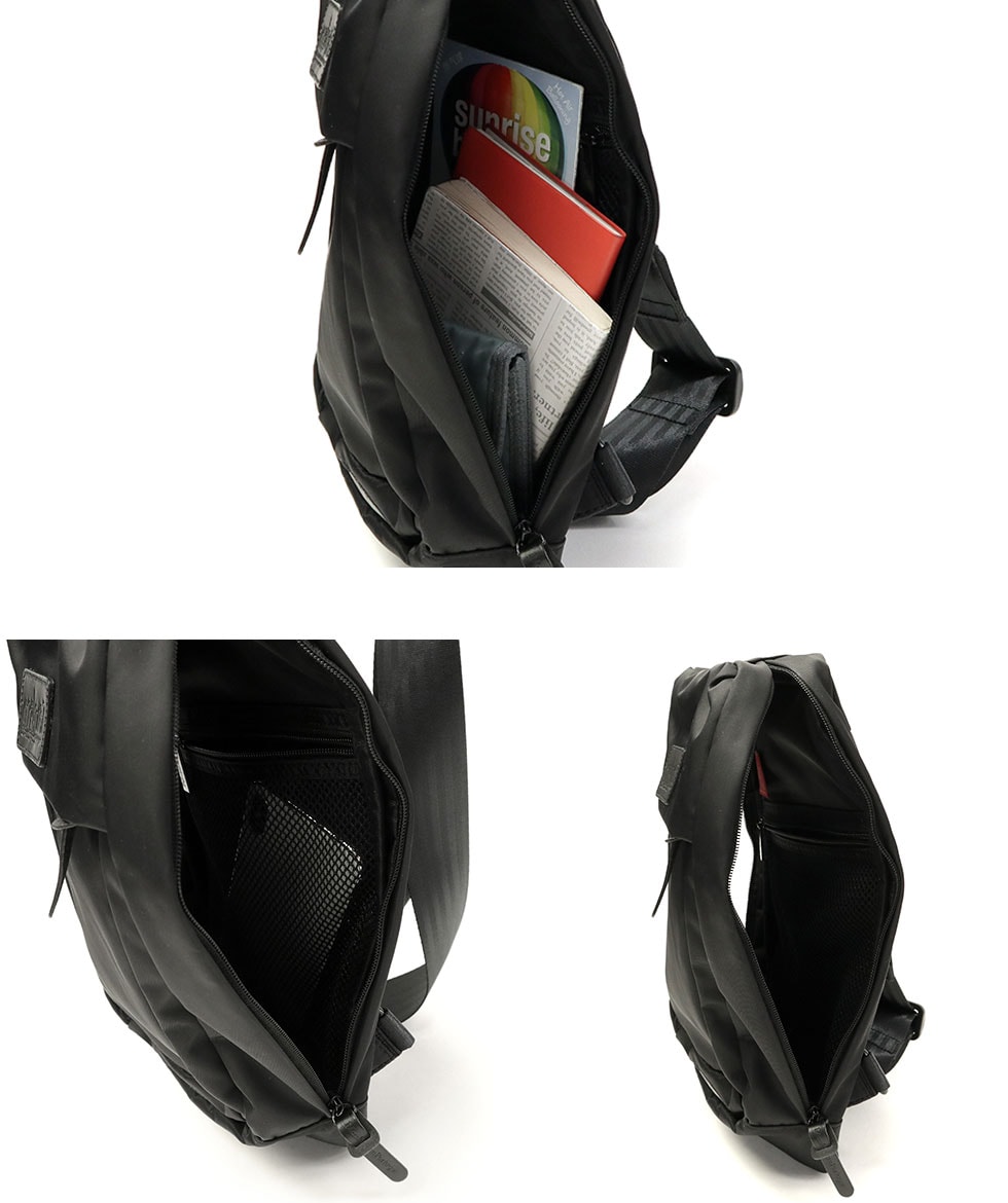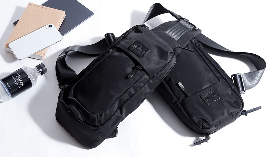 アーバンな雰囲気漂うオールブラックのデザインで、カジュアルスタイルにもジャケットスタイルにも合わせやすいボディバッグ。素材には強度と軽さを両立し、上品な光沢のあるCORDURA TWILL NYLONを採用。普段使いから休日のお出掛とタフに活躍するアイテムです。