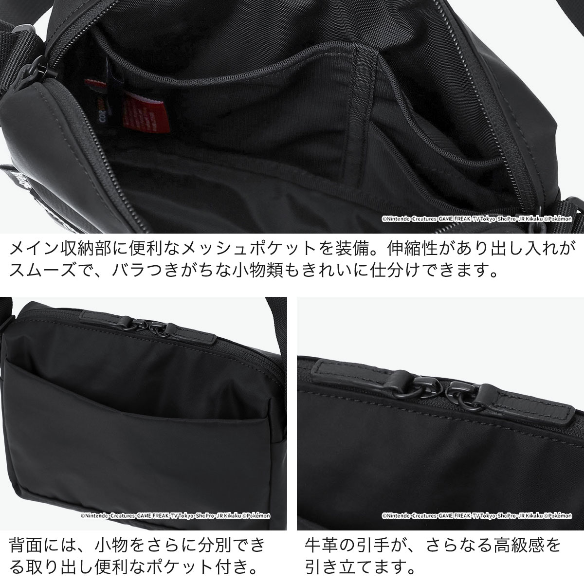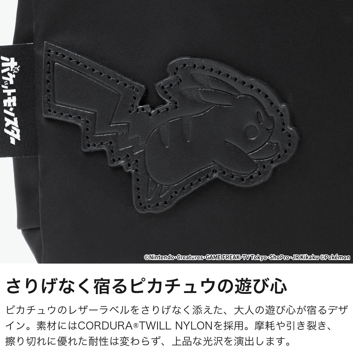 世界中で愛される「ポケットモンスター(ポケモン)」デザインのコレクションから登場したショルダーバッグ。ベース素材にCORDURA TWILL NYLONを採用し、無駄のないデザインにピカチュウのレザーラベルでアクセントを効かせた仕上がりに。牛革プーラーが高級感と確かな存在感を演出。メッシュポケット付きで小物もすっきり整理でき、日常からお出かけまで頼れる存在です。