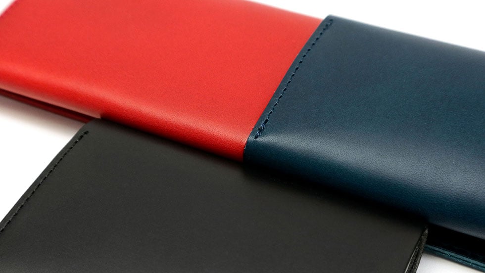 black、red、blueの素材にはイタリア製タンニン鞣し革「ブッテーロ」を使用。まさにイタリアといった艶っぽく彩度の高い発色が特徴的で、透明感のある仕上げにより革本来の風合いを残しています。繊維密度の高いショルダー革を使用し、しなやかさと丈夫さを兼備。使い込むにつれて艶が増し色味も深くなります。