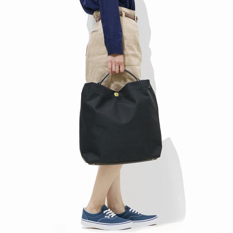 メインルームはA4サイズ程度に対応しており、程良いマチ幅を設けたデザインになっています。デイリーユースにぴったりな、普段持ち歩くアイテムを収納するのに丁度良い大きさが魅力です。また、手持ちの際に便利なハンドルを装備しています。