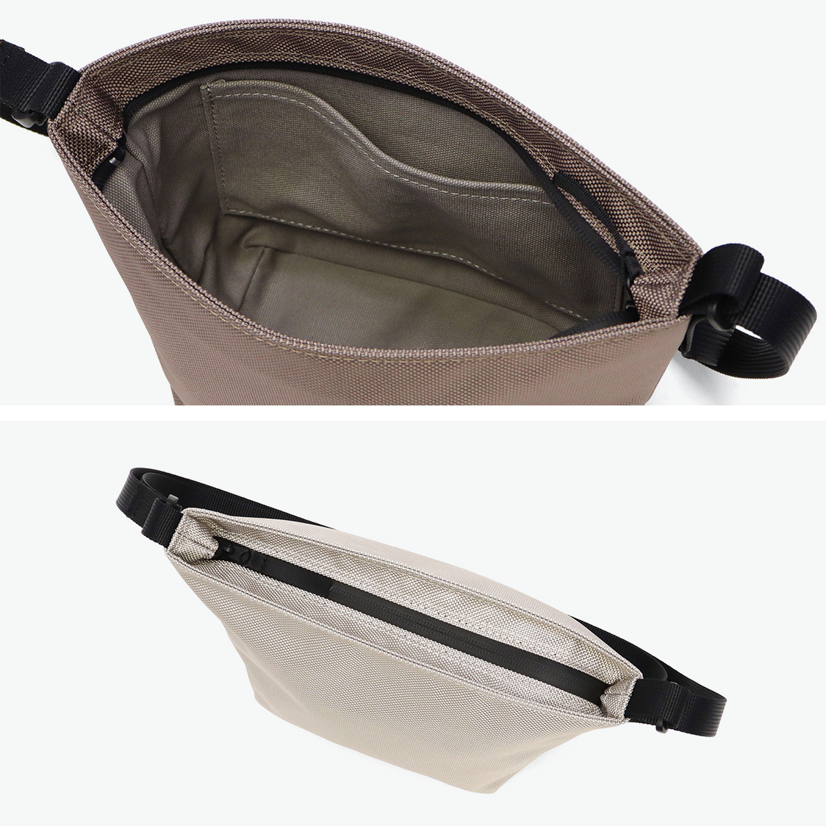 軽くて耐久性の高い66ナイロンを使用したミニショルダー。底部分とショルダーテープをブラックで統一し、引き締まった印象に。 止水ファスナーを採用しているため、雨の日や水しぶきにも安心です。バッグ内側には小物整理に便利なミニポケットを備え、スマートに収納可能。どんなコーデにも合わせやすく、デイリーユースからアウトドアシーンまで幅広く活躍します。