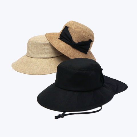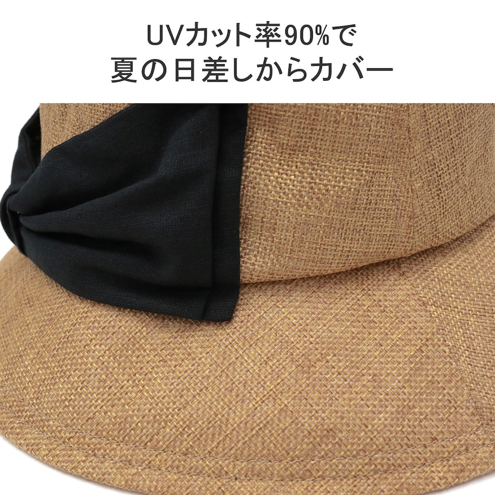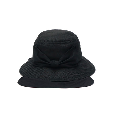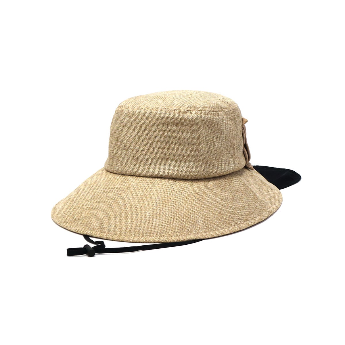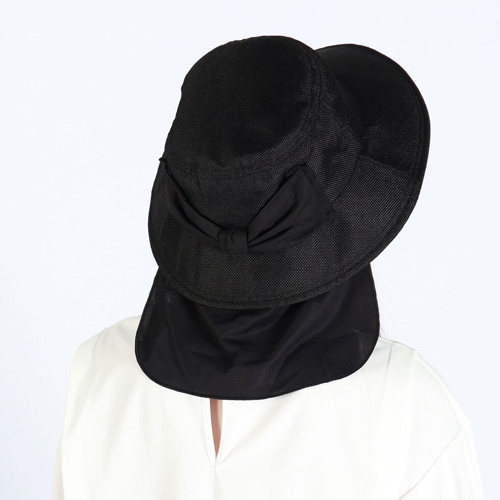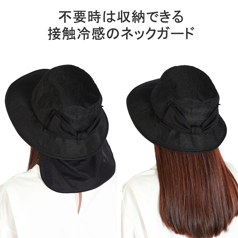 顔回りを自然にカバーしてくれる、つばの広いキャペリンハットです。涼しげで落ち着いたトーンのカラーと、背面についた大きなリボンがポイント。UVカット機能も完備しており、厳しい暑さ・紫外線対策もばっちり!さらに接触冷感のネックガード付きで、首元をひんやりと冷やしてくれます。