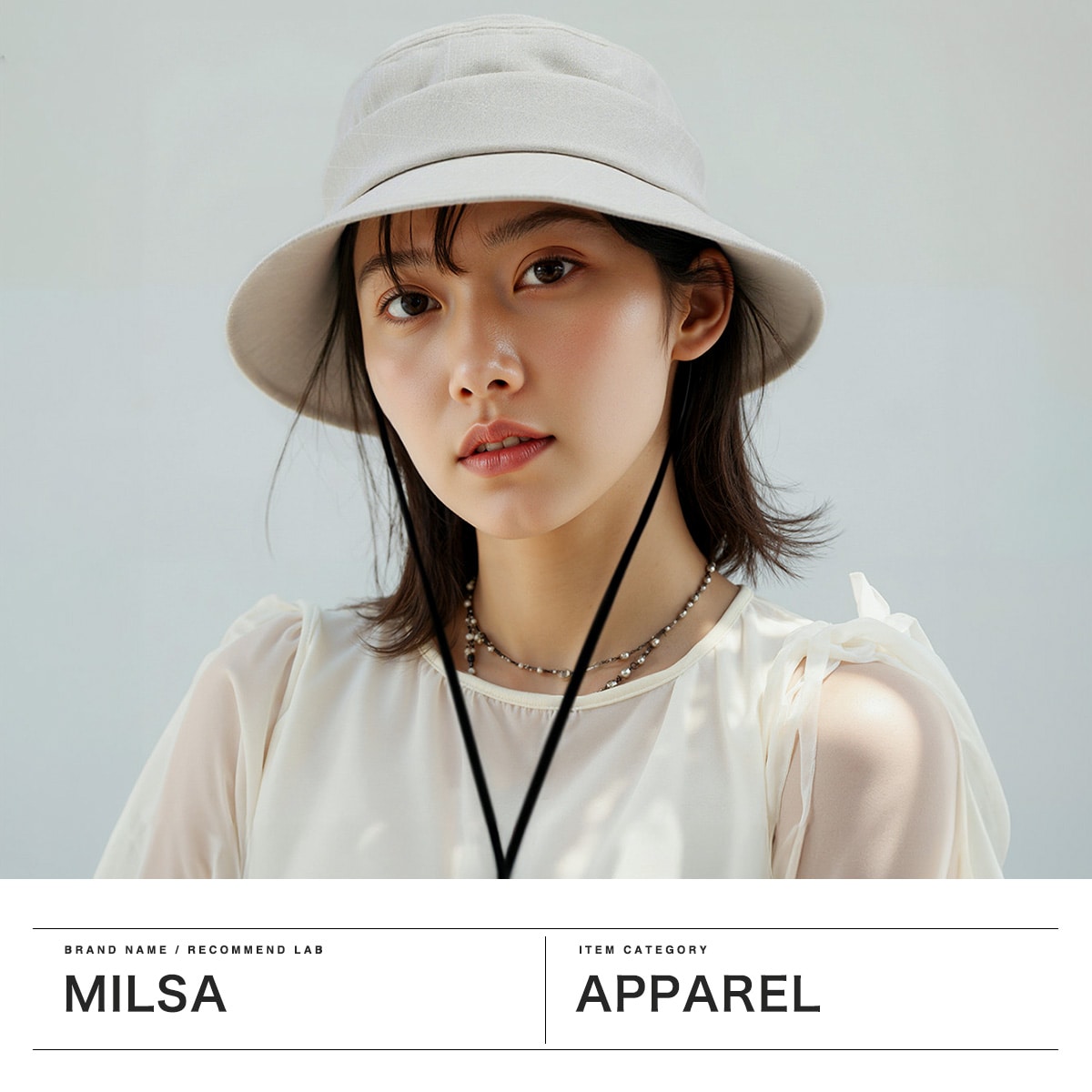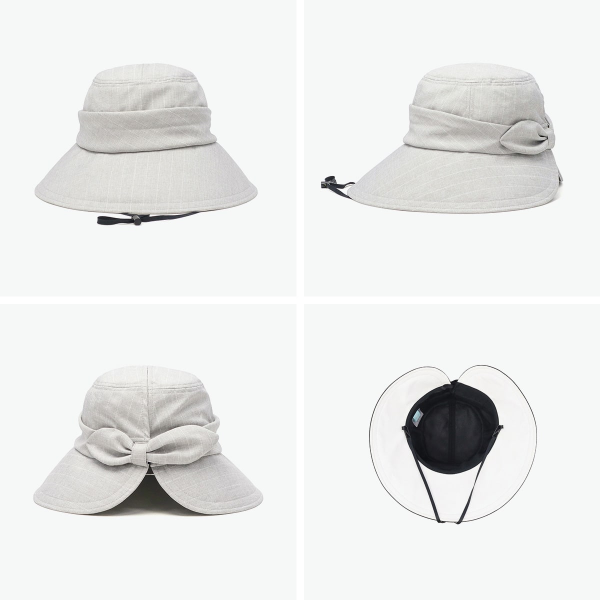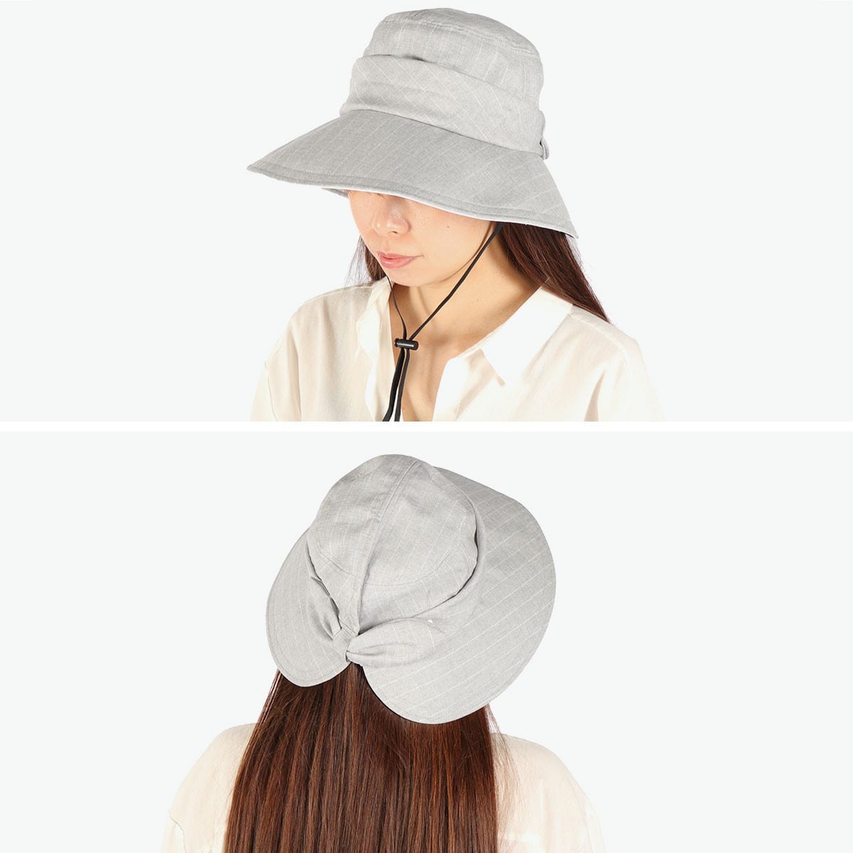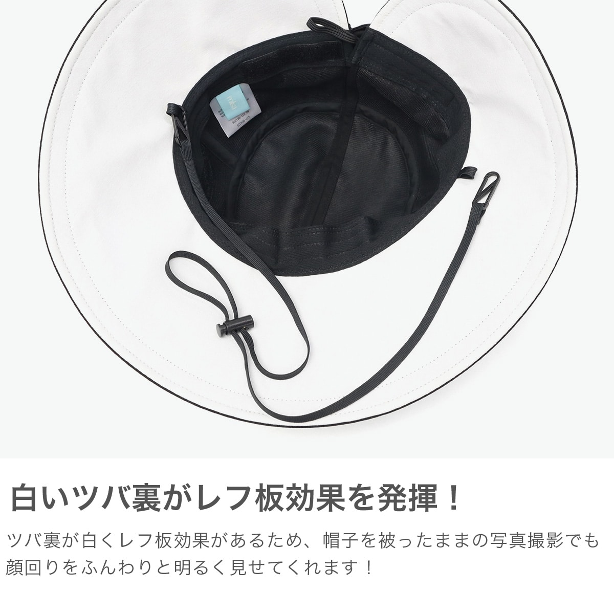 後ろのリボンが可愛らしいデザインのフリーハット。ツバ裏が白く、レフ版効果があるので帽子をかぶったままの写真撮影でもお顔写りが明るく綺麗に!旅行やお出かけにもオススメです。