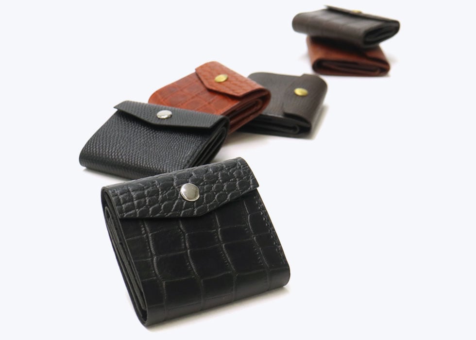 ポケットに収まるコンパクトなサイズ感に、型押しデザインで高級感を纏った二つ折り財布。小さくても存在感のあるルックスで、バッグの中でもひと際目立つアイテムです。しなやかなレザーで扱いやすく、使い心地の良さも実感していただけます。
