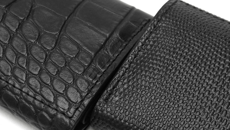 素材には最高級とされる胴部分のみを使用し、しっとりとした触感と重厚感のあるイビザレザーを採用。フルベジタブルタンニンなめしで仕上げ、経年変化を楽しめるレザーです。派手すぎず上品な細かい粒が魅力のリザード柄と、美しく華やかな印象のクロコ柄、2パターンのエンボスレザーからお選びいただけます。