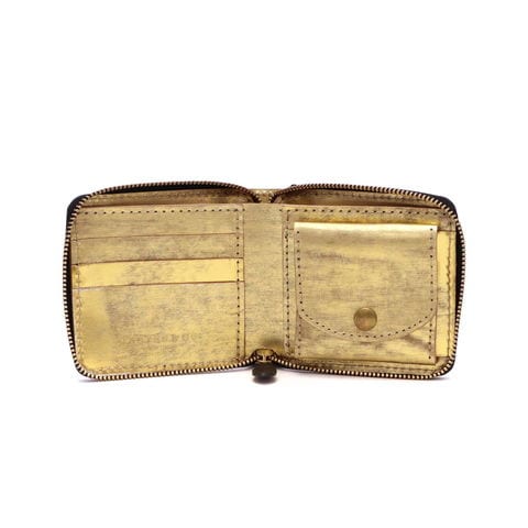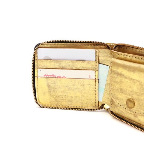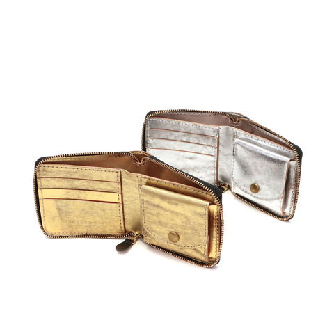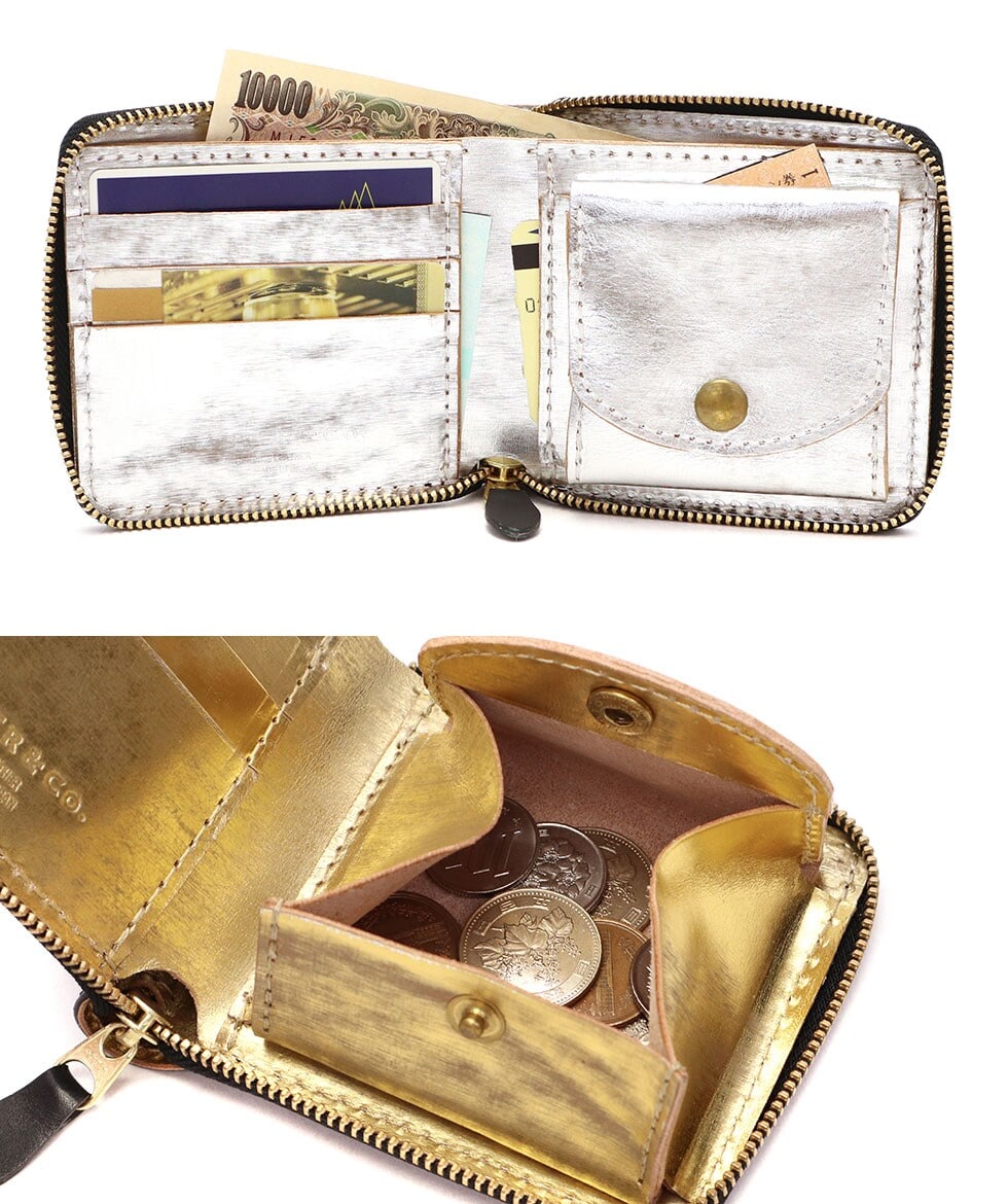 日本の職人たちが常にハイクオリティーかつ味わい深いベーシックなアイテムを展開するMASTER&Co.。こちらはシンプルな外観を覆す、インパクト抜群の内装が魅力の『BUTTERO』のラウンドファスナー二つ折り財布。ゴールド、シルバーの顔料の上からやすりがけをし、アンティーク調の表情に仕上がっています。