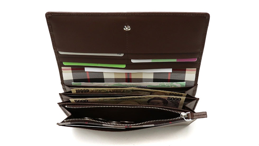 本体内部には計22ヶ所の豊富なカードポケットを装備しており、つい増えがちなカードもスペースごとにしっかりと管理することが可能。また、お札入れは2ヶ所設けられているため、お札の種別管理だけでなく、領収書やチケット類をまとめて収納できるのもポイントです。