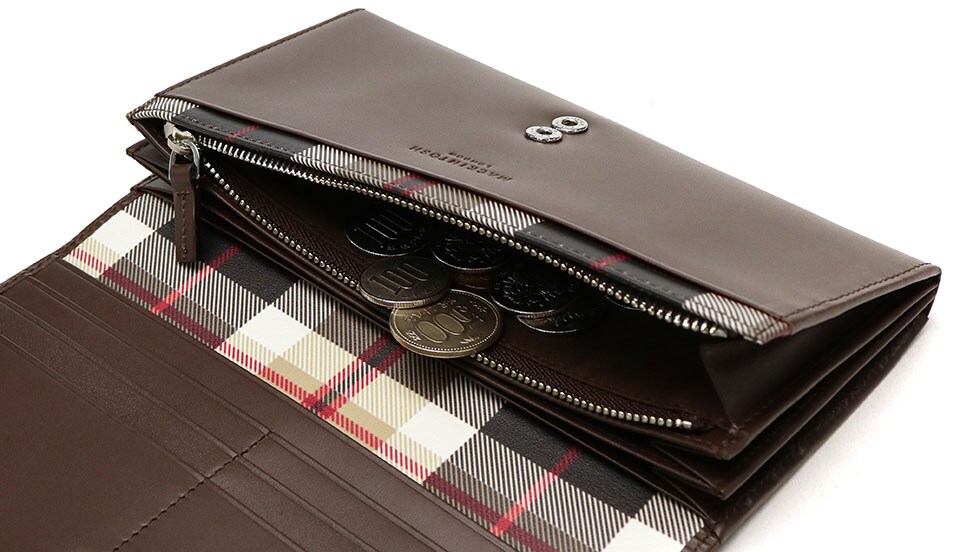 MACKINTOSH LONDONの象徴的チェック柄”HOUSE CHECK”を、内装一部にさりげなく配したアイコニックなシリーズ『HOUSE/ハウス』。こちらは、イタリア製のソフトスムース革を使用した長財布です。女性の手元に品良く馴染むブリティッシュなデザインと、ふっくらしたシルエットが魅力となっています。