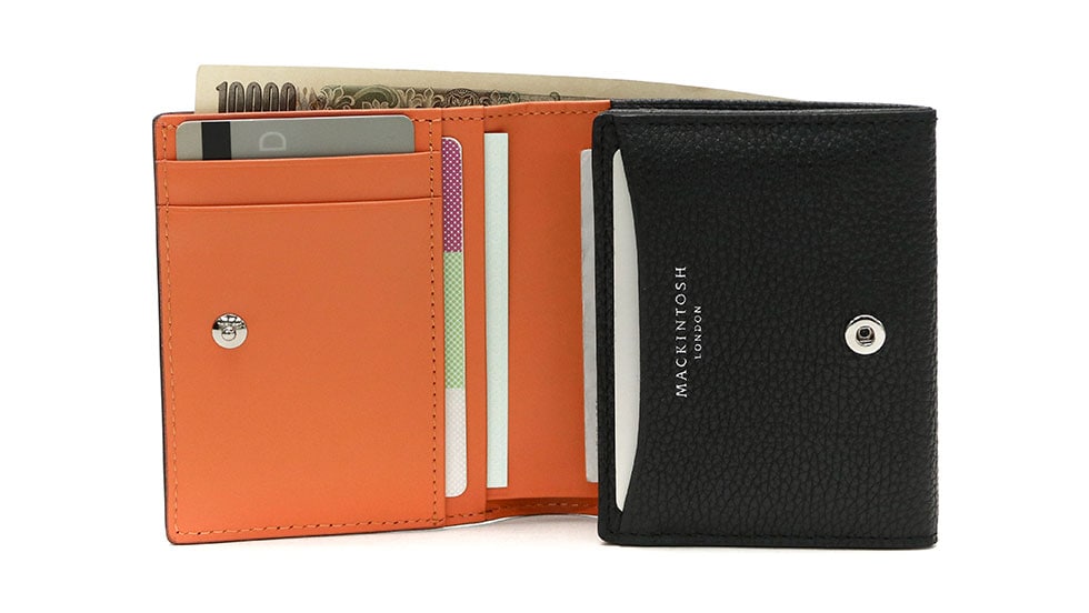 本体は内装を一目で確認できる二つ折りタイプ。カードや紙幣を最低限に抑え、内装をいつもクリアに保てるのが魅力です。
