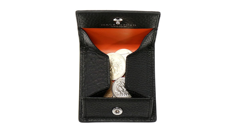 英国風のオーセンティックな逸品を輩出し続けるMACKINTOSH LONDON。こちらはシンプルでベーシックなシリーズ『MEDAL』のミニマルなコインケース。深みのあるシュリンク型押しレザーにメダル形状のロゴプレートをアクセントで施した、ビジネスシーンにも違和感なくお使いいただけるデザインです。