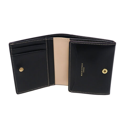 英国風のオーセンティックな逸品を輩出し続けるMACKINTOSH LONDON。こちらは真鍮製のオリジナルブローチがポイントのクラシックなシリーズ『HERITAGE』の二つ折り財布です。本体は、革本来のコシや手触りを最大限活かす丘染めを採用。長く愛用するほどに、経年変化を楽しんで頂けるアイテムに仕上がっています。