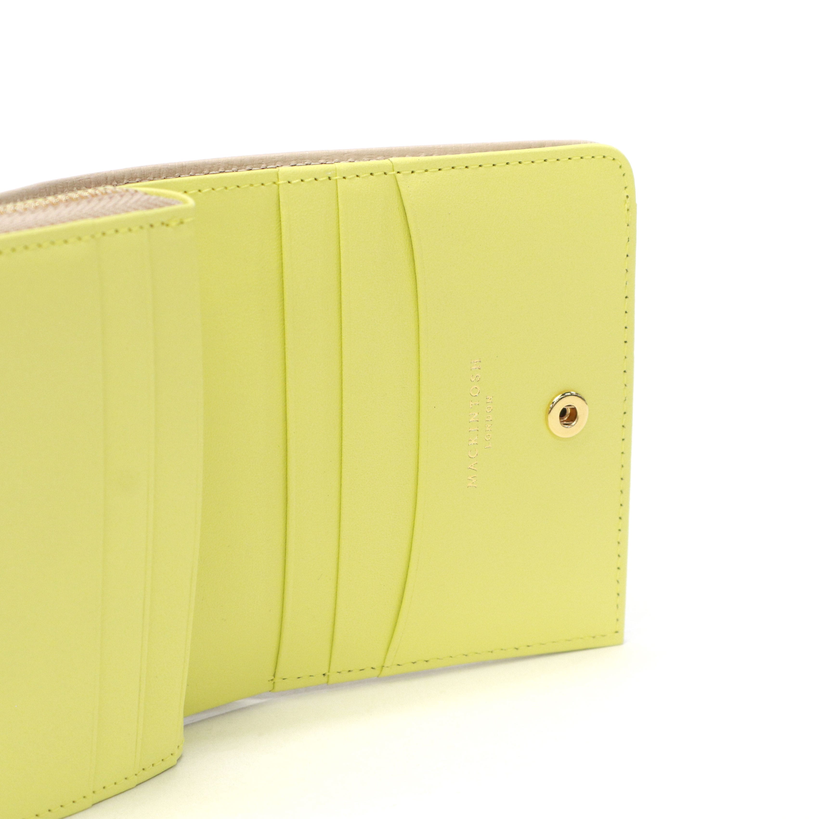 マッキントッシュ ロンドンの新イニシャルロゴをあしらった『EM』シリーズの二つ折り財布です。傷が目立ちにくい型押しレザーは、ソフトな質感と上品なハリが魅力。英国調カラーの内装や金具がさりげないアクセントに。小銭入れはファスナータイプで使いやすさ抜群。機能性と洗練を備えた大人のアイテムです。