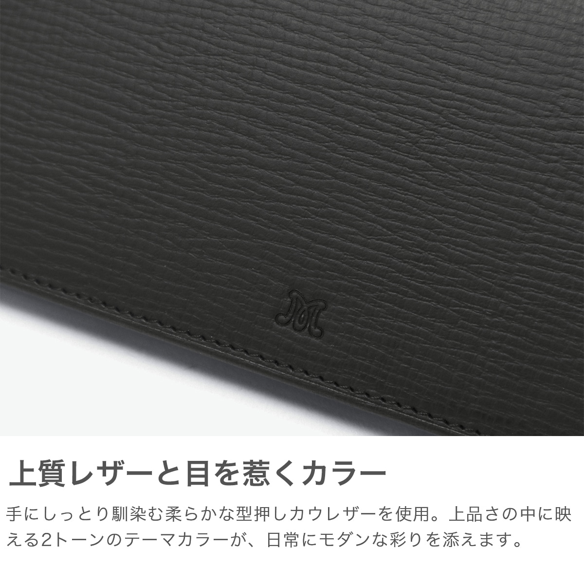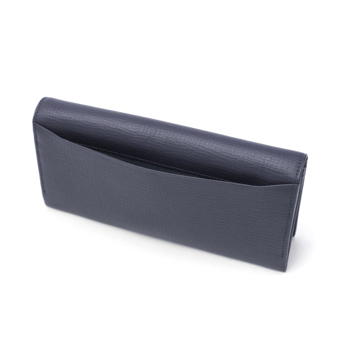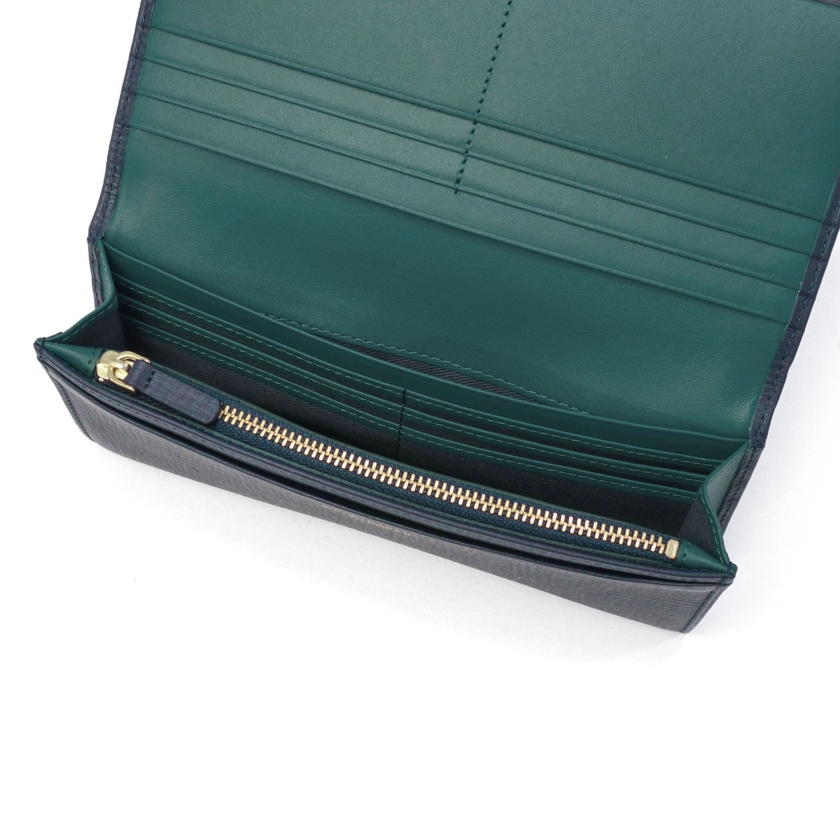 マッキントッシュロンドンのイニシャルロゴを使用した『EM』シリーズの長財布。薄型フォルムでスマートな印象の本体。傷などが目立ちにくい型押しで、張りはありながらもソフトなタッチで手にフィットします。シックな色合いと英国調の内装のバイカラーをポイントに、コンパクトで現代的なデザインに仕上げました。