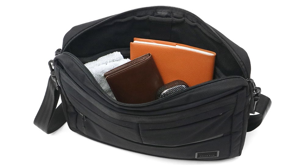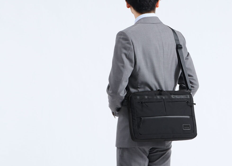 堅くなりすぎずカジュアルさを残したスマートなデザインで、オンオフ兼用にもおすすめのショルダーバッグ。スリムなボディに豊富なポケットを備え、通勤時に必要なアイテムがしっかり収納できる機能的なつくりが魅力です。