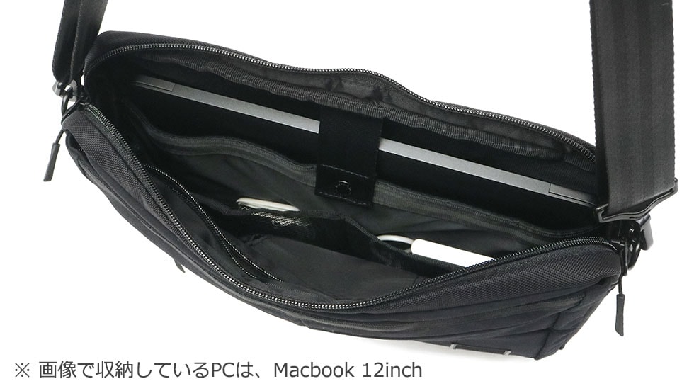 仕様 |[外側] ・ジップポケット(L)×2 ・ジップポケット(XS)×2 ・ジップポケット(M)×1 [内側] ・PC収納×1 ・ジップポケット(L)×1 ・メッシュポケット(S)×2 ・ポケット(S)×3 [付属品] ・ショルダーストラップ×1
