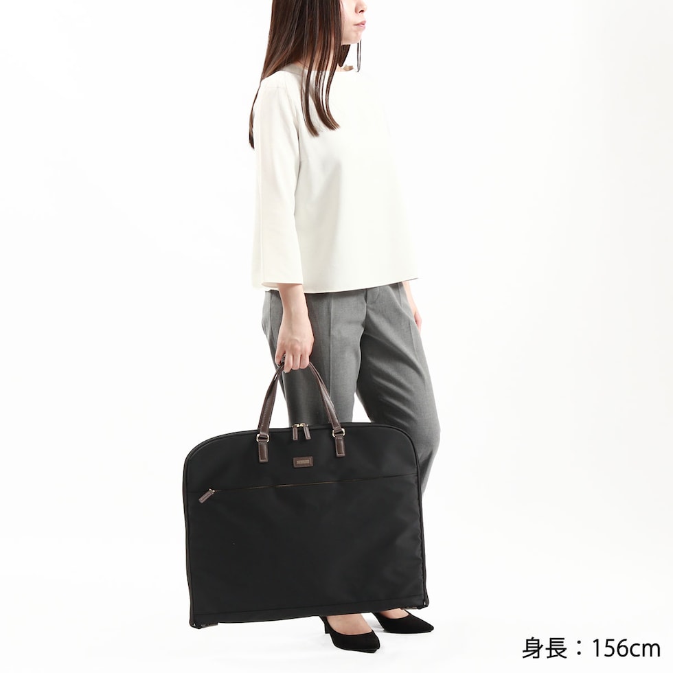 スタイルを選ばない、シンプルで上品なレディーストラベルシリーズ『アメリア2』のガーメントバッグ。旅行や出張、冠婚葬祭など大切な衣類の持ち運びに最適なアイテムです。内装は三つ折り仕様となっており、便利な小物ポケットも装備。本体生地には、撥水・撥油機能に優れたテフロン加工を施しているので、ある程度の雨なら影響を受けにくいので安心です。
