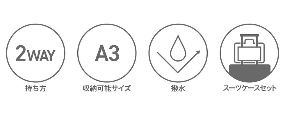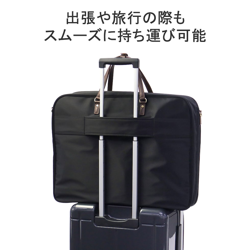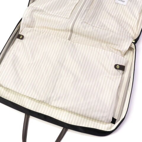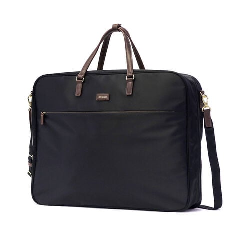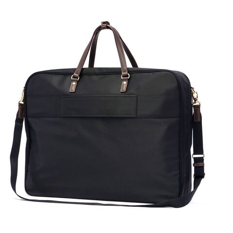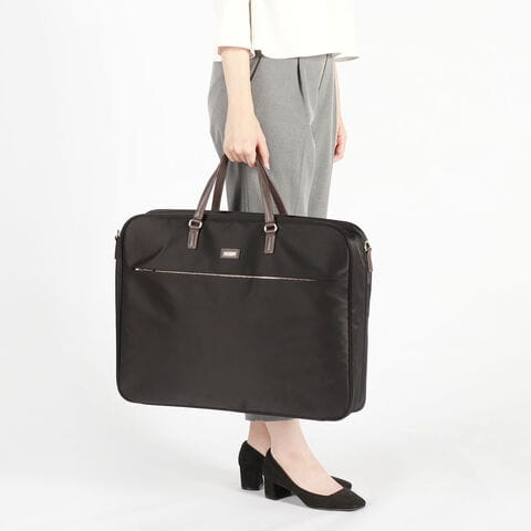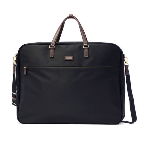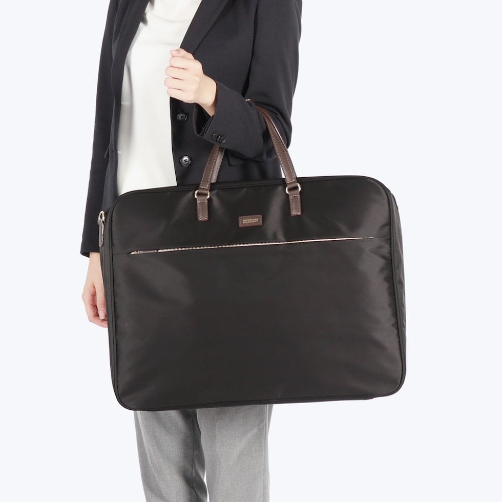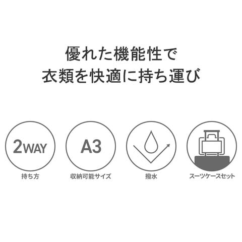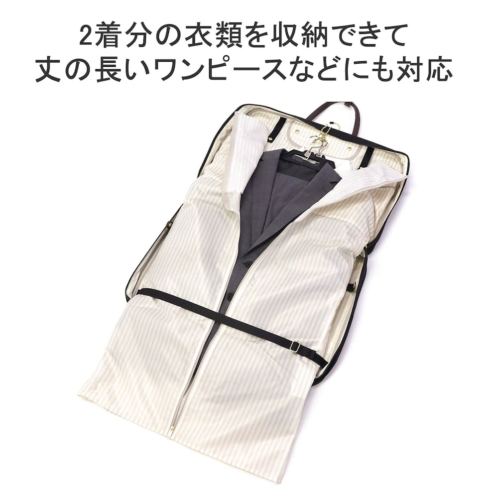 スタイルを選ばない、シンプルで上品なレディーストラベルシリーズ『アメリア2』の2着用ガーメントバッグ。旅行や出張、冠婚葬祭など、シワにしたくない衣類の持ち運びに便利なアイテムです。内装は三つ折り仕様のため、丈の長いワンピース等も収納可能。さらに小物用のポケットや、撥水・撥油機能に優れたテフロン加工生地などの便利な仕様が移動の負担を軽減します。