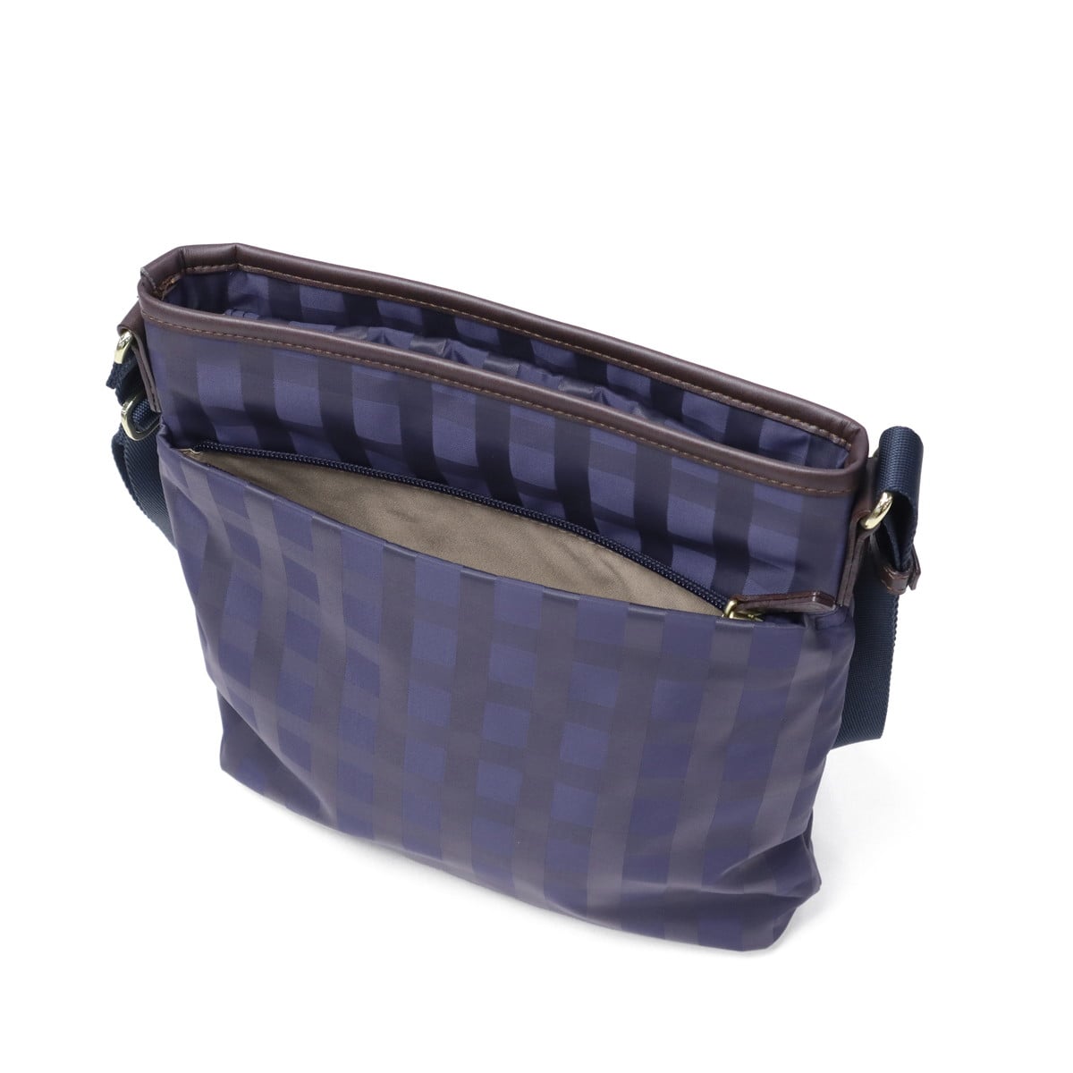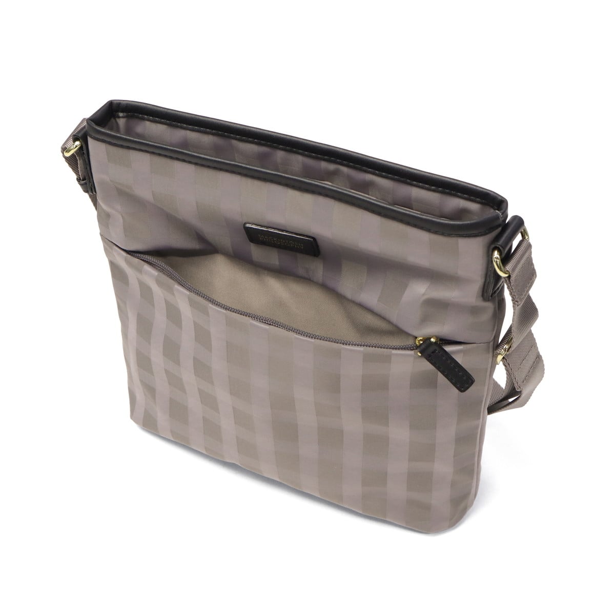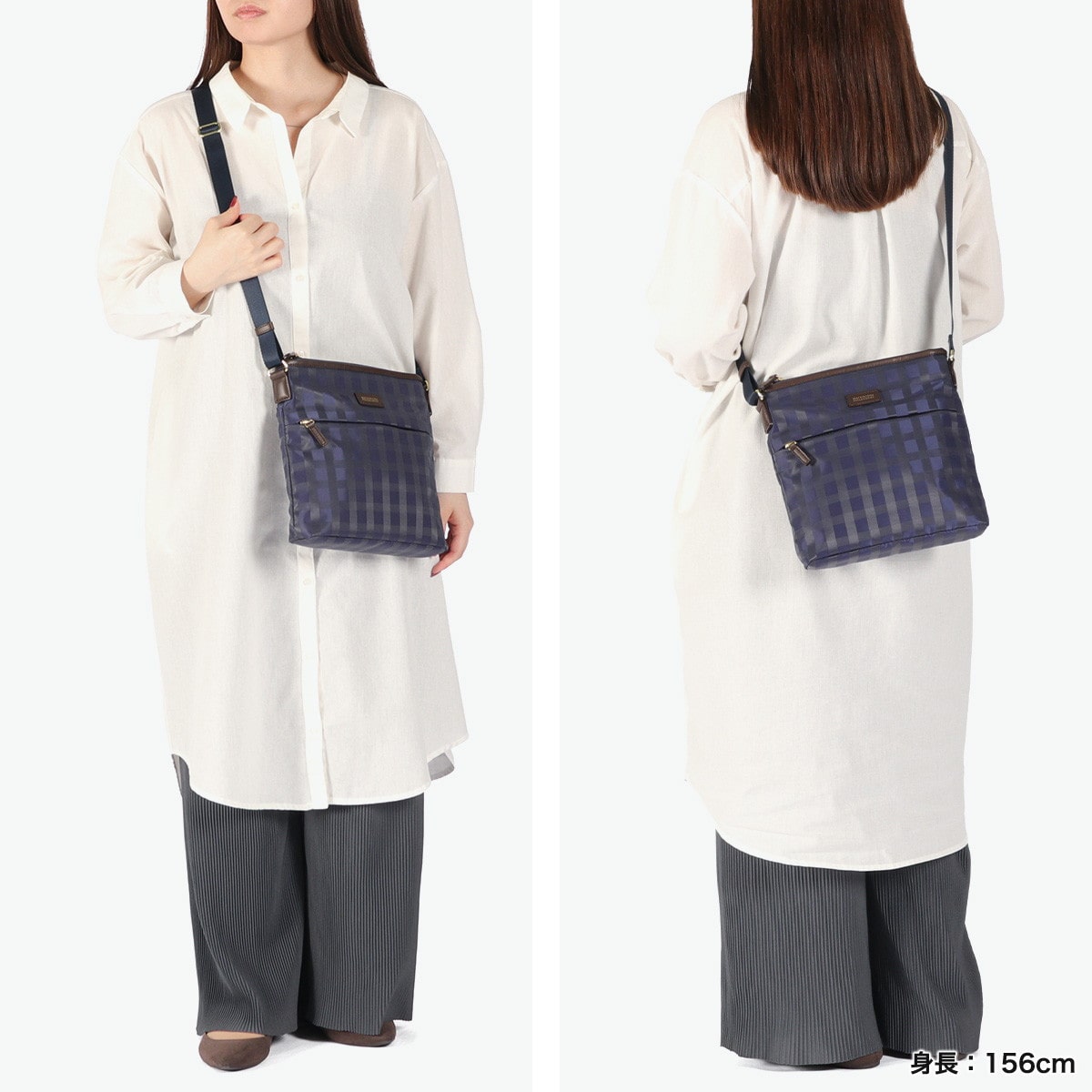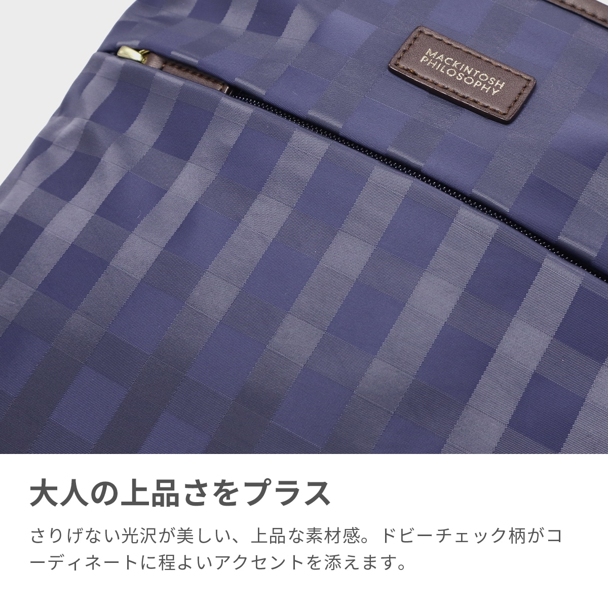 スタイルを選ばない、シンプルで上品なレディーストラベルシリーズ『アメリア2』のショルダーバッグです。きれいめスタイルにも合わせやすいドビーチェック柄と、光沢感のある素材が大人の品格を演出。薄マチながら収納力に優れ、長財布もすっぽり収まる使いやすいサイズ感。カジュアルからきれいめまで幅広く活躍するアイテムです。