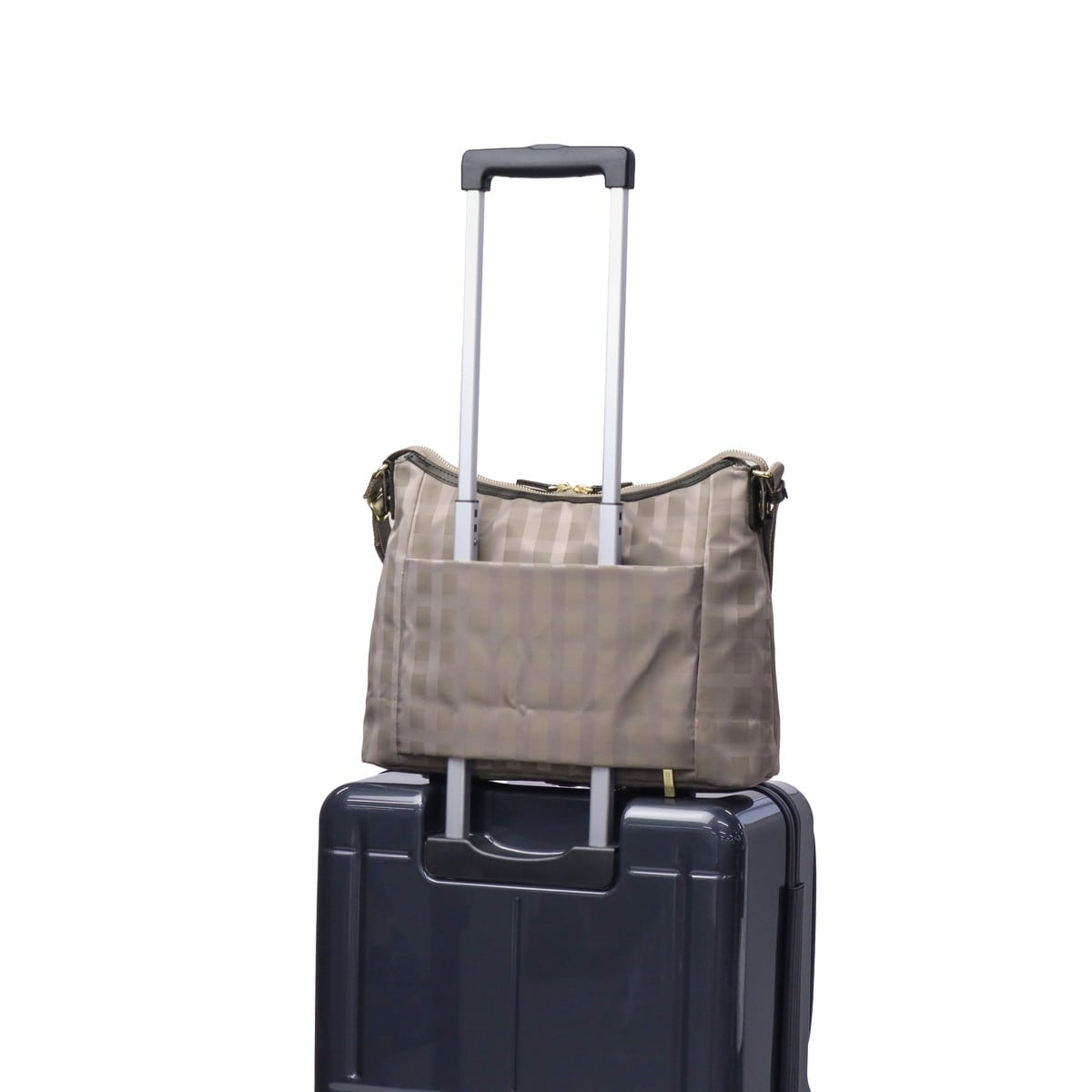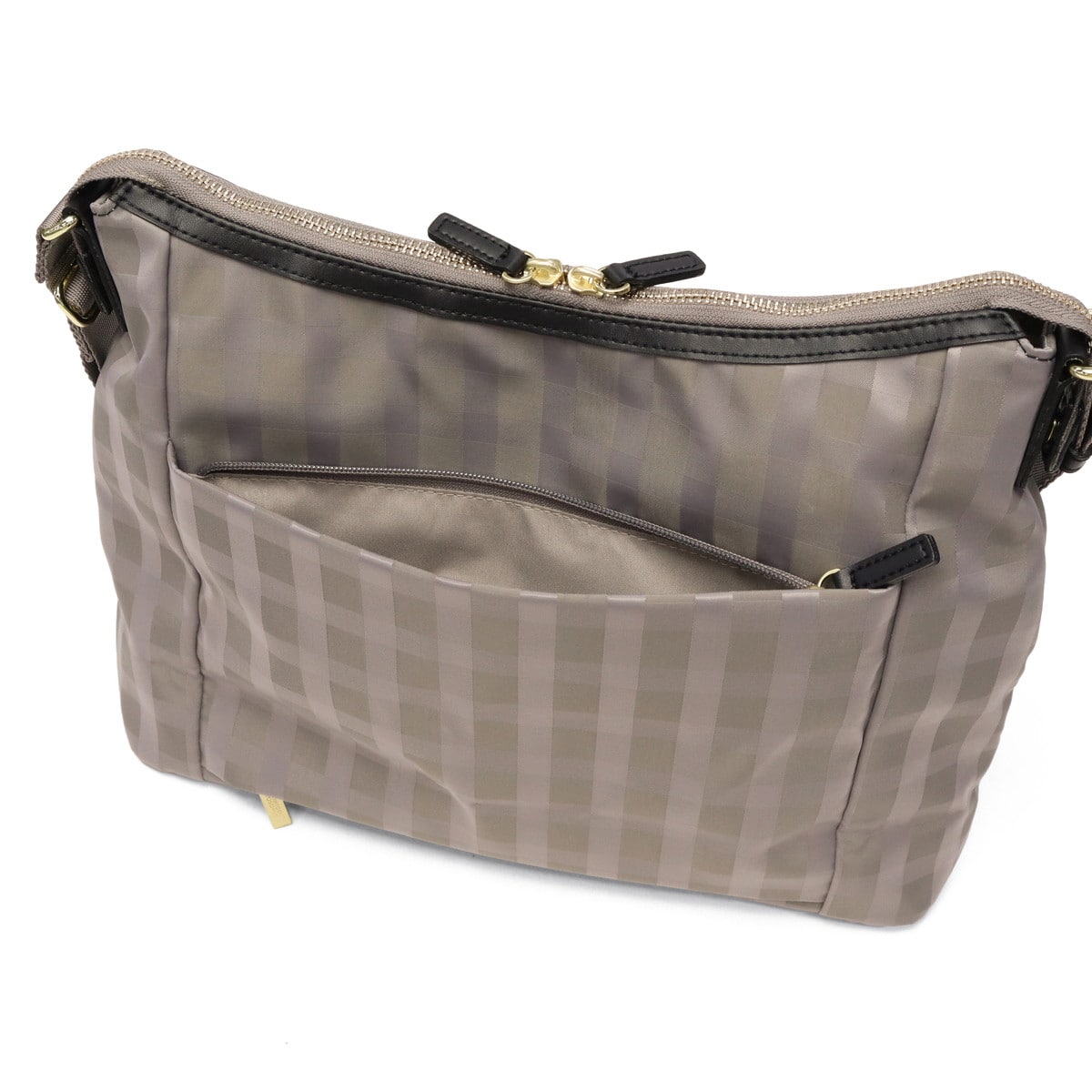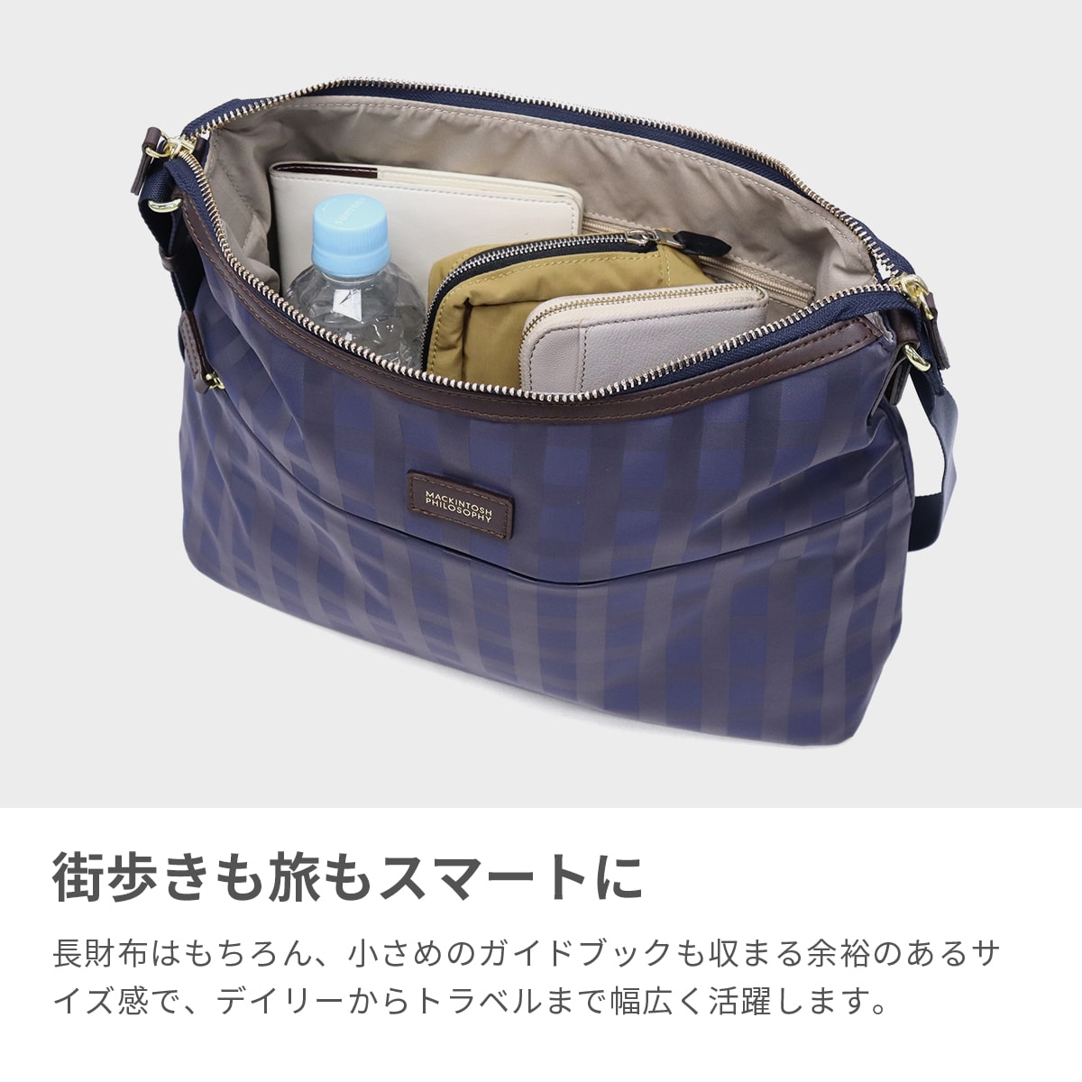 スタイルを選ばない、シンプルで上品なレディーストラベルシリーズ『アメリア2』のショルダーバッグです。きれいめスタイルにも合わせやすいドビーチェック柄と、光沢感のある素材が大人の品格を演出。長財布や小さめガイドブックも入る、街歩き~観光まで使いやすいサイズ感。カジュアルからきれいめまで幅広く活躍するアイテムです。