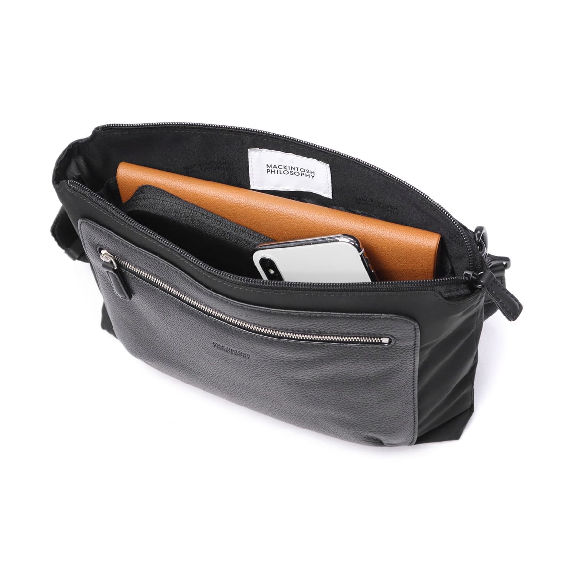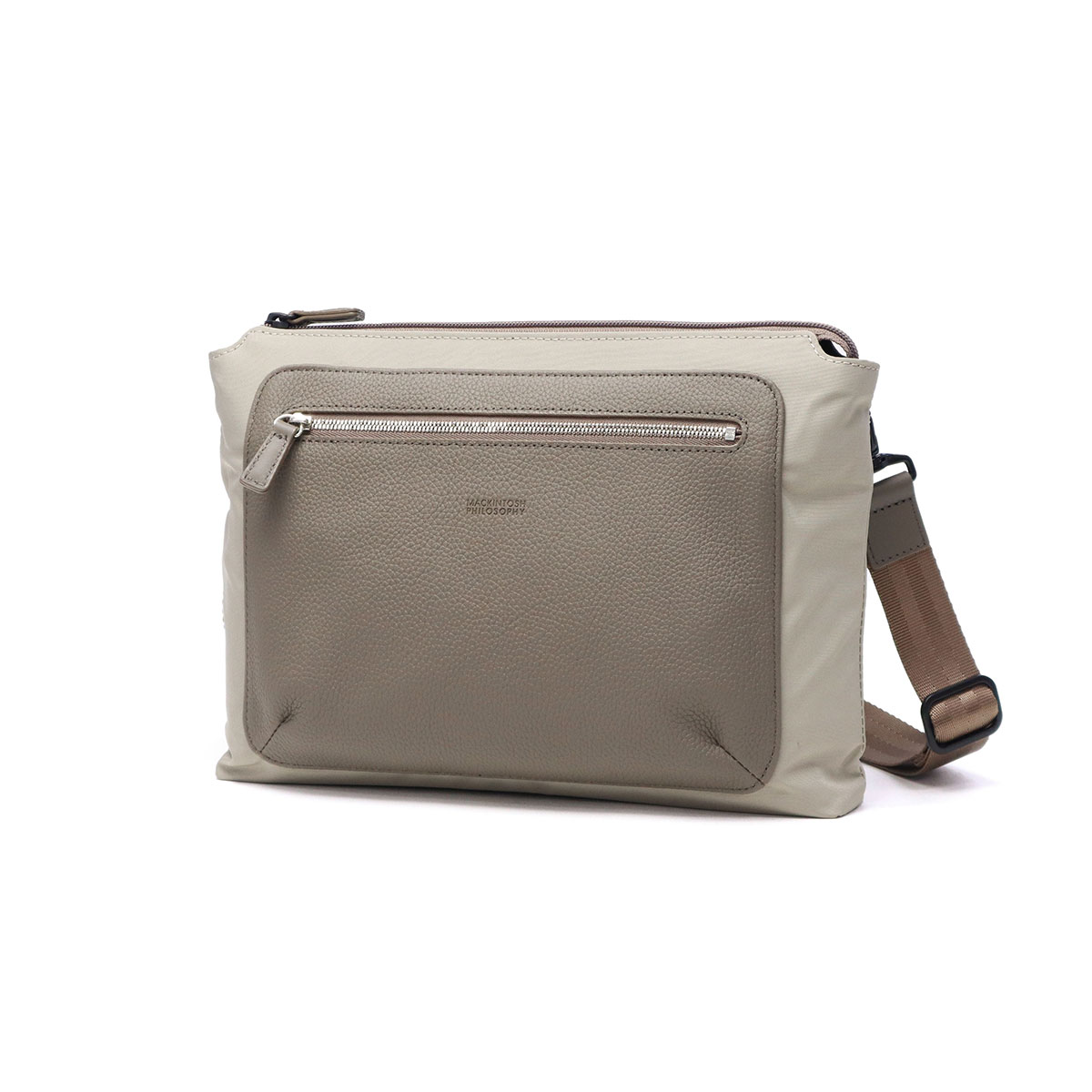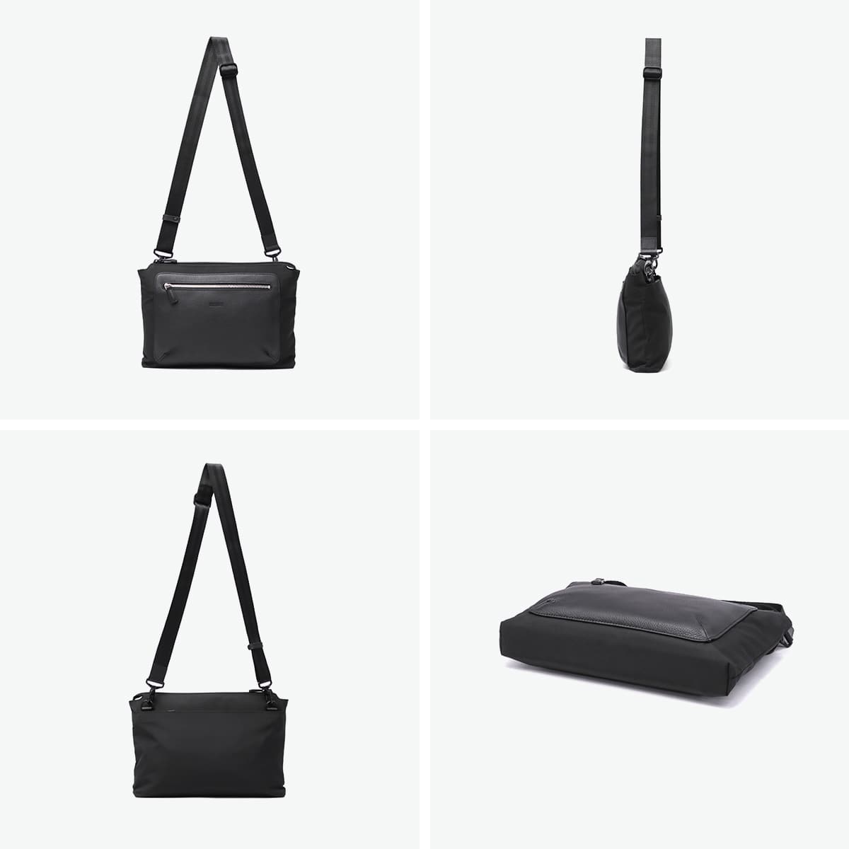 長財布やスマホなどの身の回り品も入るコンパクトなサコッシュ。本体に光沢感のあるナイロン330クラシックツイル、フロント部分にソフトレザーを使用することでよりきちっとした印象に。カジュアルな装いはもちろん、きれいめスタイルにもマッチする上品な存在感のバッグです。