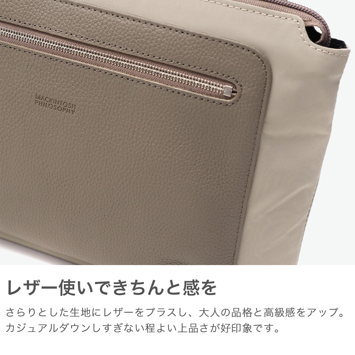 レザーコンビ素材で シーンを選ばない上品さ