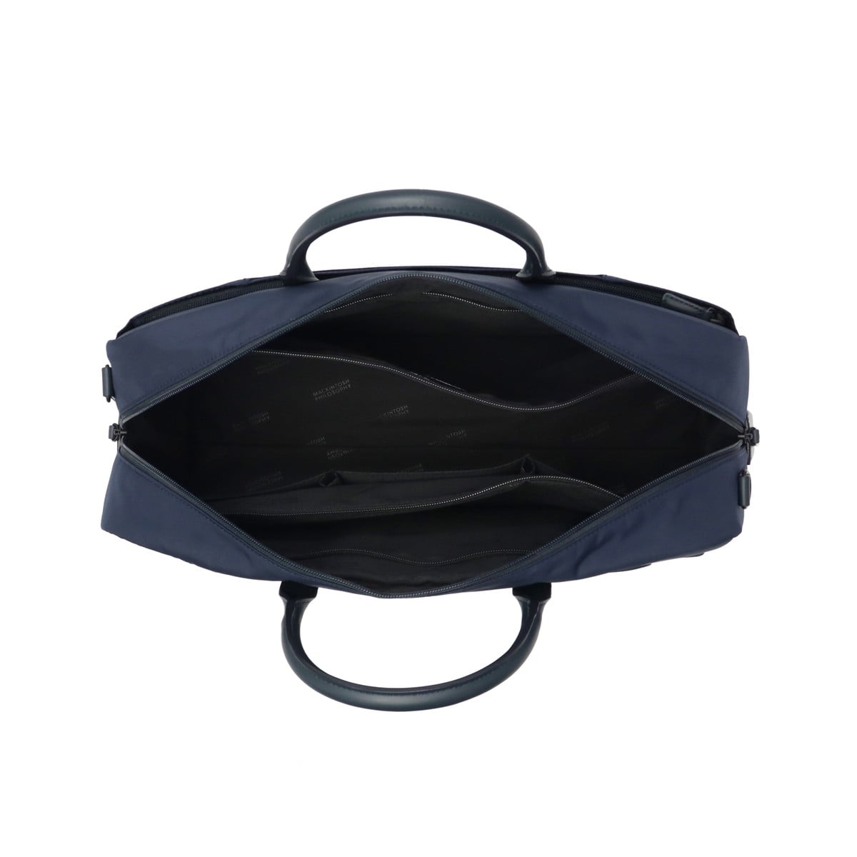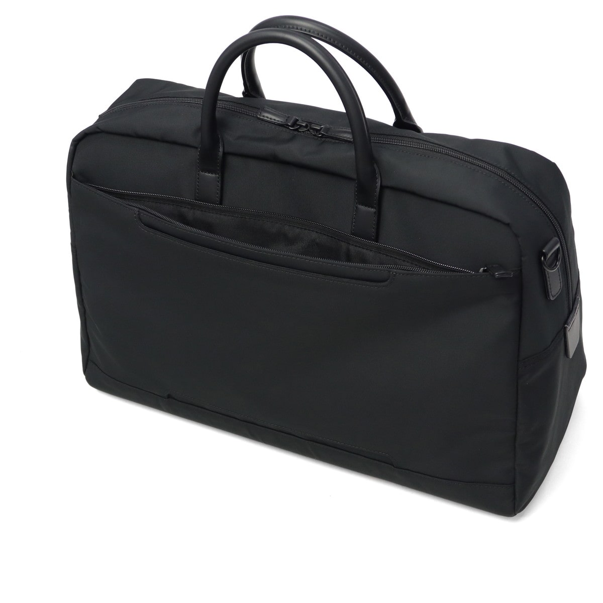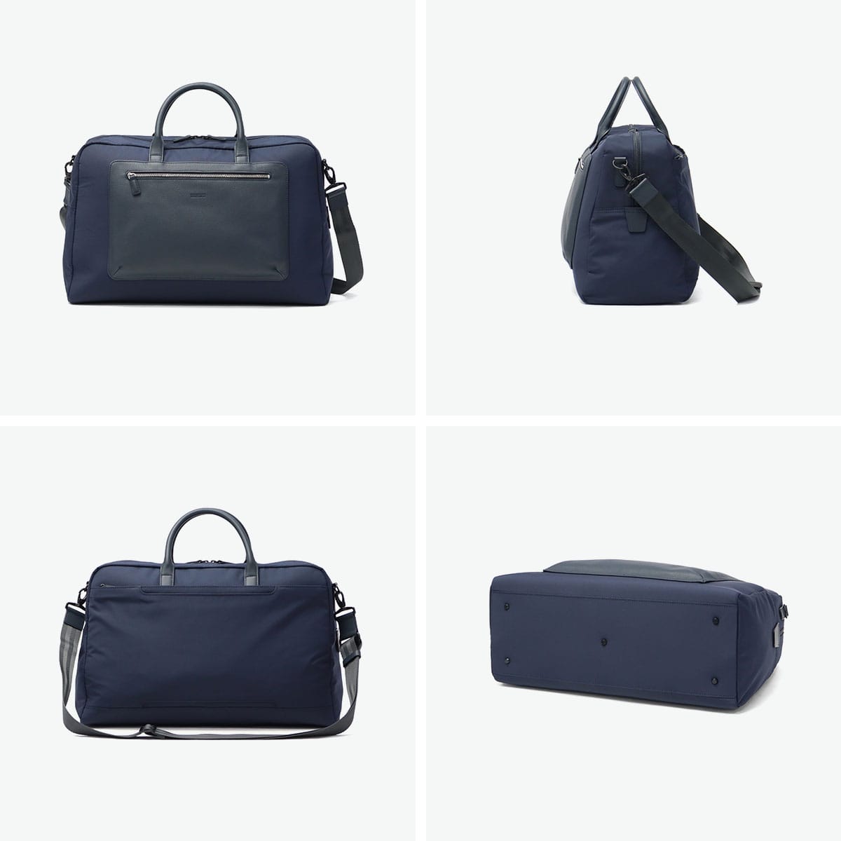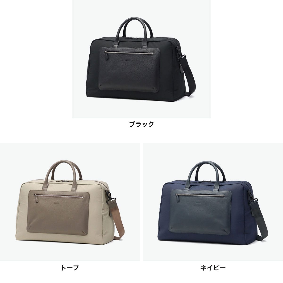旅行や出張にも最適なMサイズのボストンバッグです。取り外し可能なショルダーストラップや、キャリーに連結できるセットアップ機能付きで荷物が増えても安心。光沢感のあるナイロン×レザーの上品な素材感と、充実の内外ポケットで使いやすさも抜群。日常にもスマートに馴染む、万能なアイテムです。